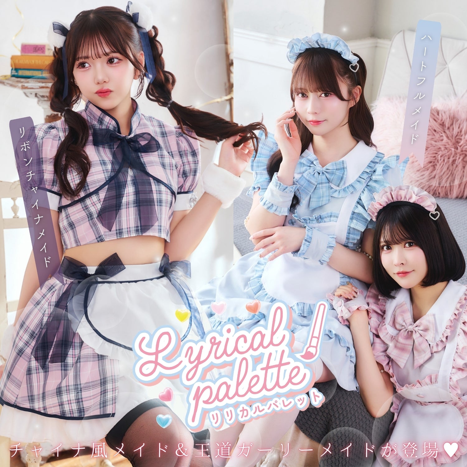 《JamsCollection着用》コスプレ リリパレ アイドルチェックメイド レディース フリーサイズ ブルー/ピンク/イエロー/パープル/ミント 【クリアストーン】♡