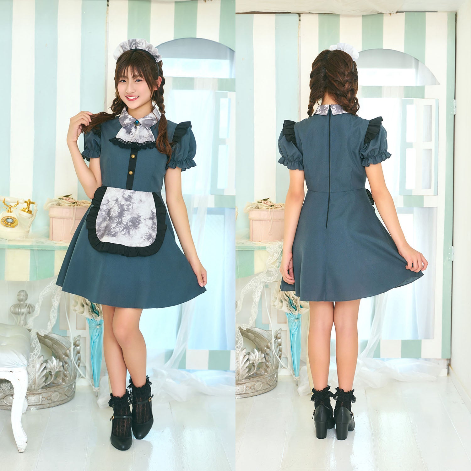 ジャボとエプロンにはオリジナルの汚れ風プリント生地を採用し、アンティークな雰囲気を演出します。