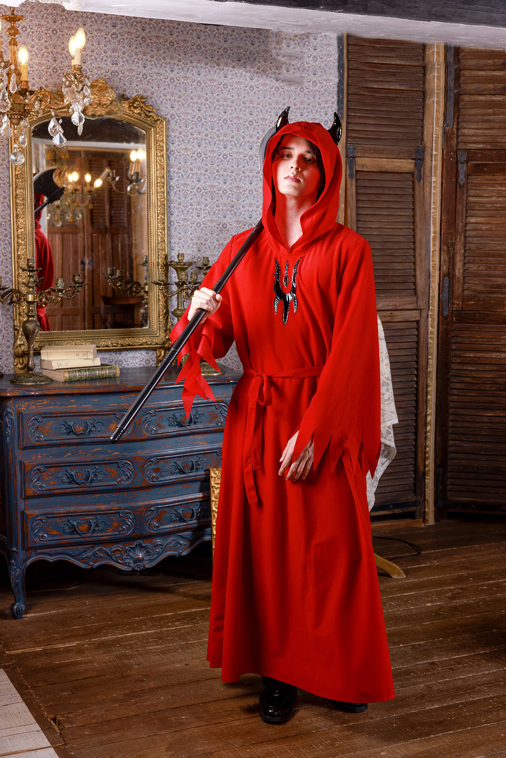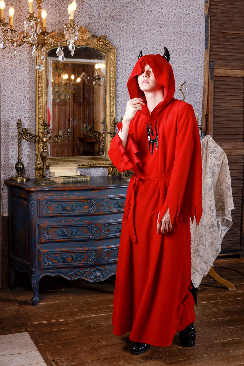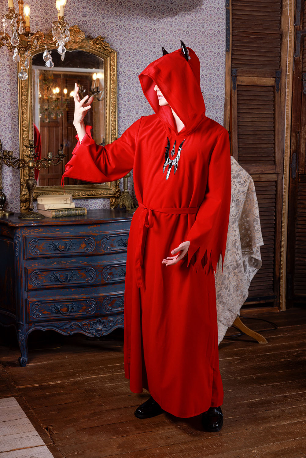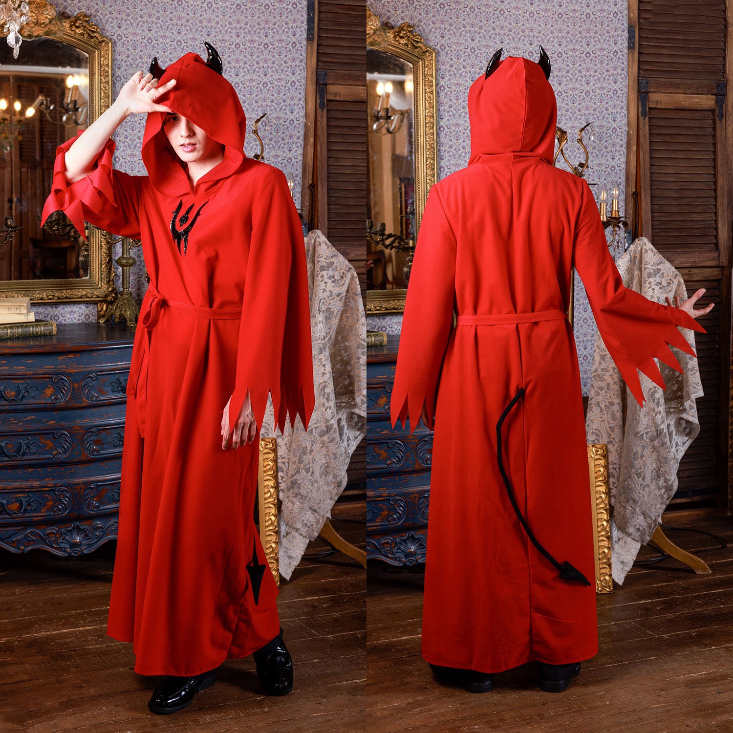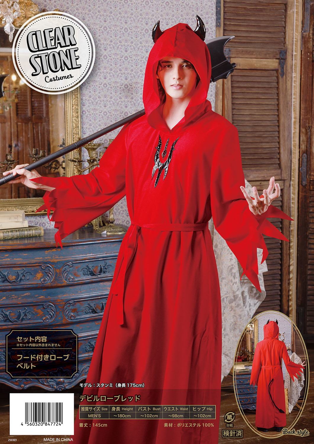 ≪スタンミさん着用≫ コスプレ 仮装 ハロウィン デビルローブ メンズ フリーサイズ レッド 【クリアストーン】