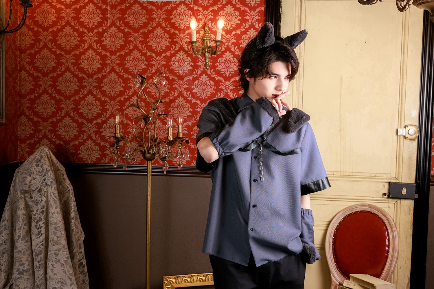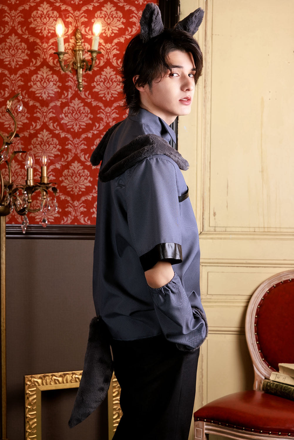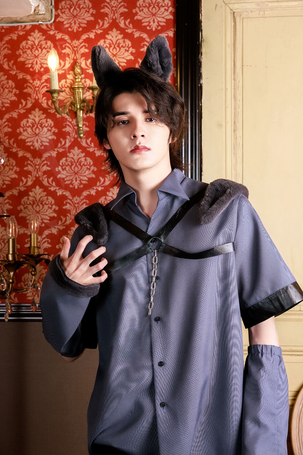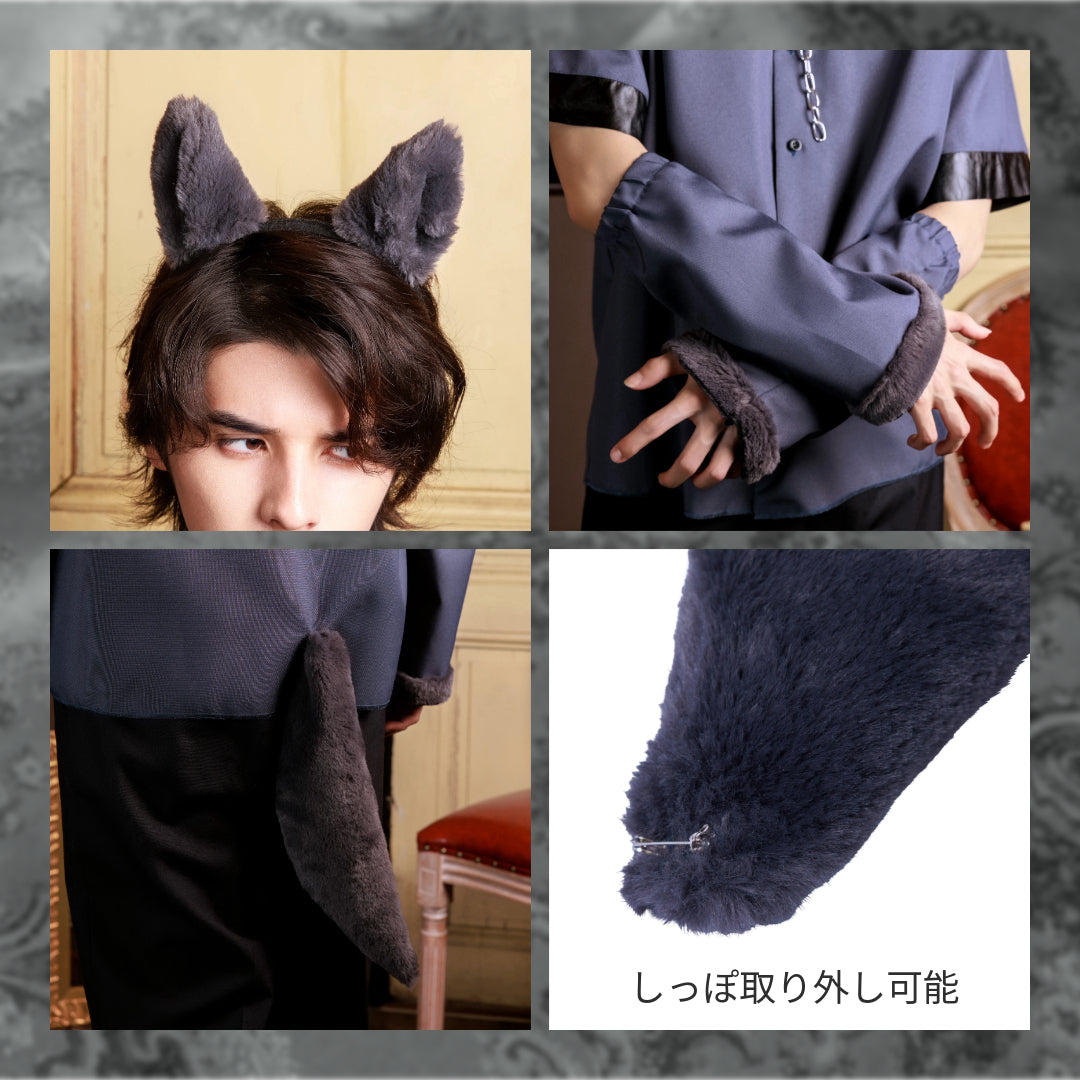 グレーのファーを使用したカチューシャは立体的なつくりでオオカミの耳を再現。 肩のファーは二重仕立てでボリュームがあり、後ろ肩まで付いているので振り向きポーズもバッチリ決まります。 さらにアームウォーマーの袖口にもファーを使用。 腕にはゴムが入っているので体型に合わせてフィットします。 トップスには絶妙な色合いのチャコールグレー生地を使用し、黒の合皮テープを組み合わせることでハードさをプラス。 さらに胸のシルバーチェーンがワイルドな雰囲気を演出します。 中綿がたっぷりと入ったしっぽはピン付きなのでお手入れ簡単。 コスプレ初心者さんも挑戦しやすいシャツタイプで、お手持ちのボトムスと合わせるだけでお手軽にハロウィン仮装が完成します。 |