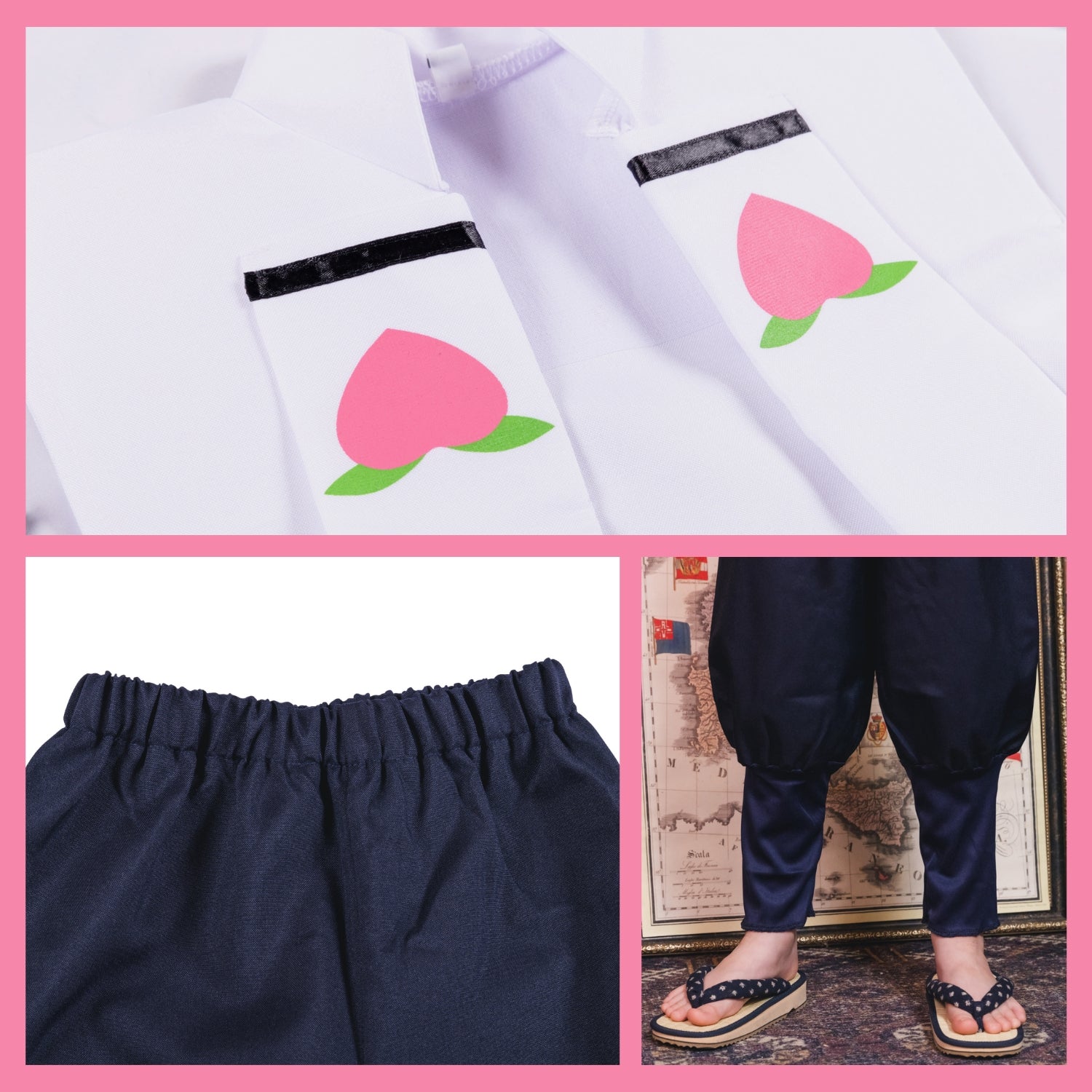 ありそうでなかった桃太郎のコスチューム!着物はストレッチ素材の被り仕様なので着脱簡単。