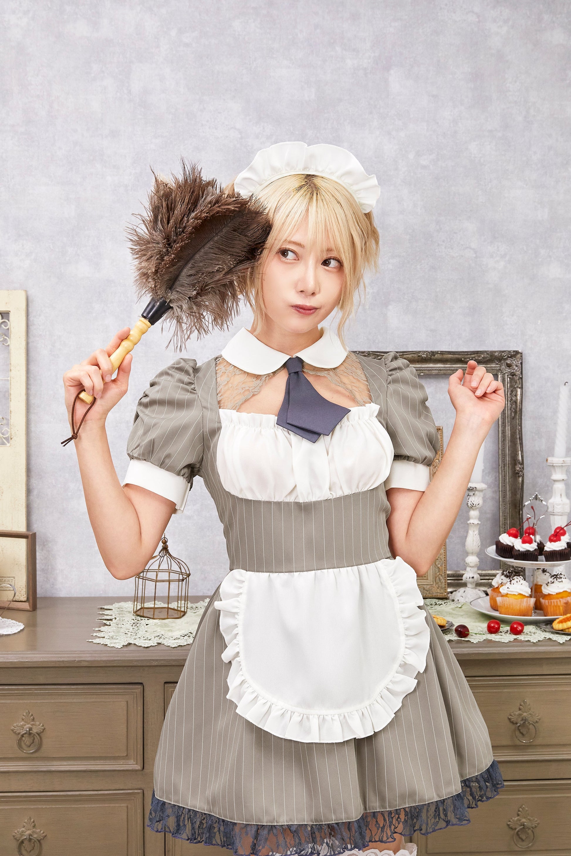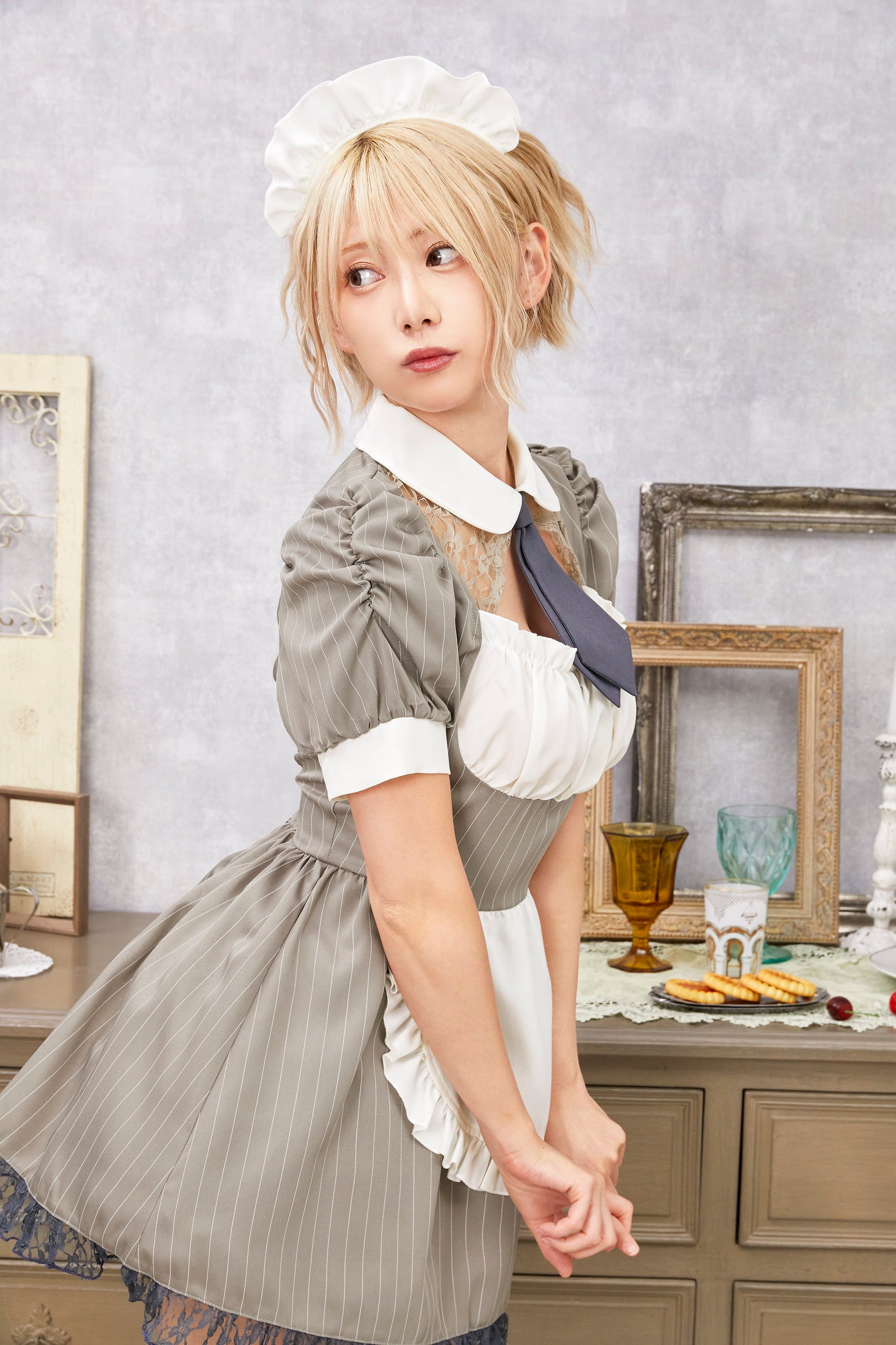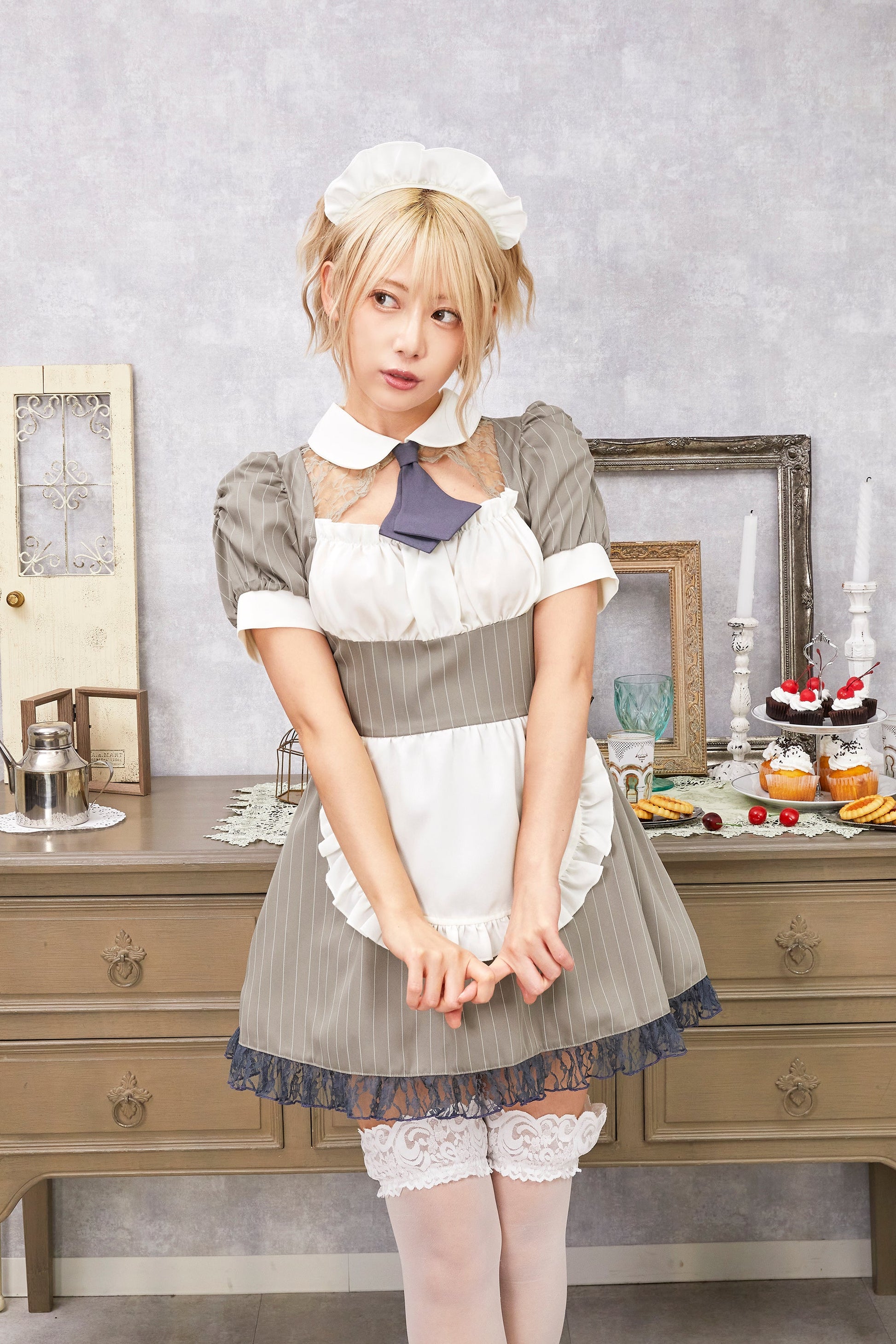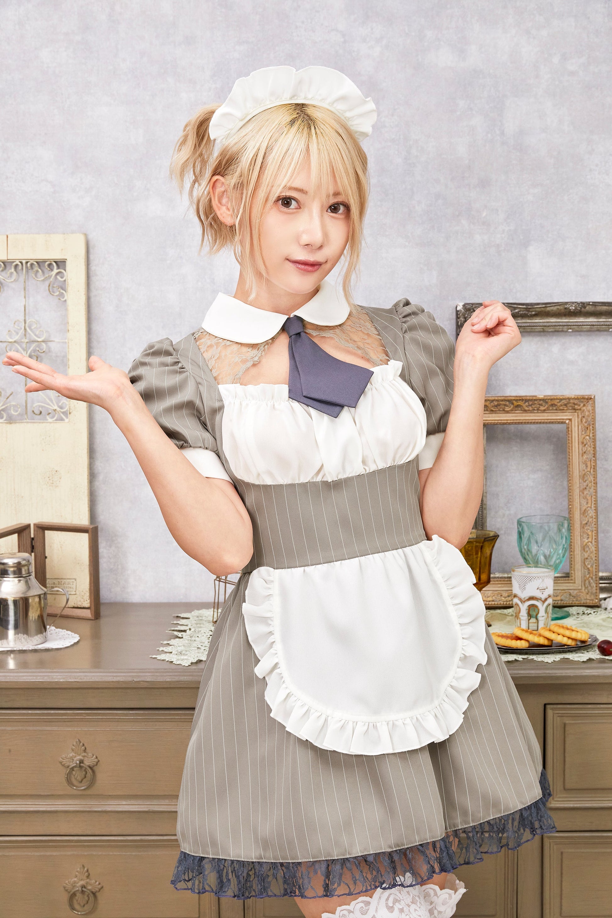 コスプレ メイド バレンタイン ミルクココアメイド レディース グレー 【クリアストーン】