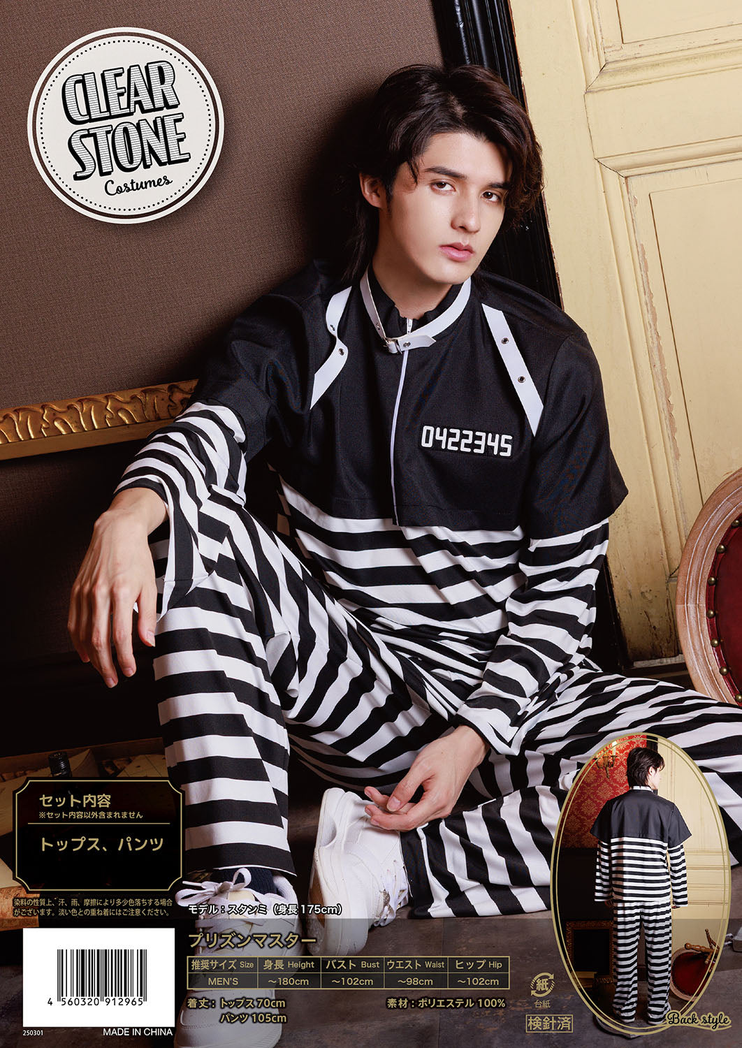 [New] ≪スタンミさん着用≫ コスプレ ハロウィン 囚人 プリズンマスター メンズ フリーサイズ ブラック【クリアストーン】