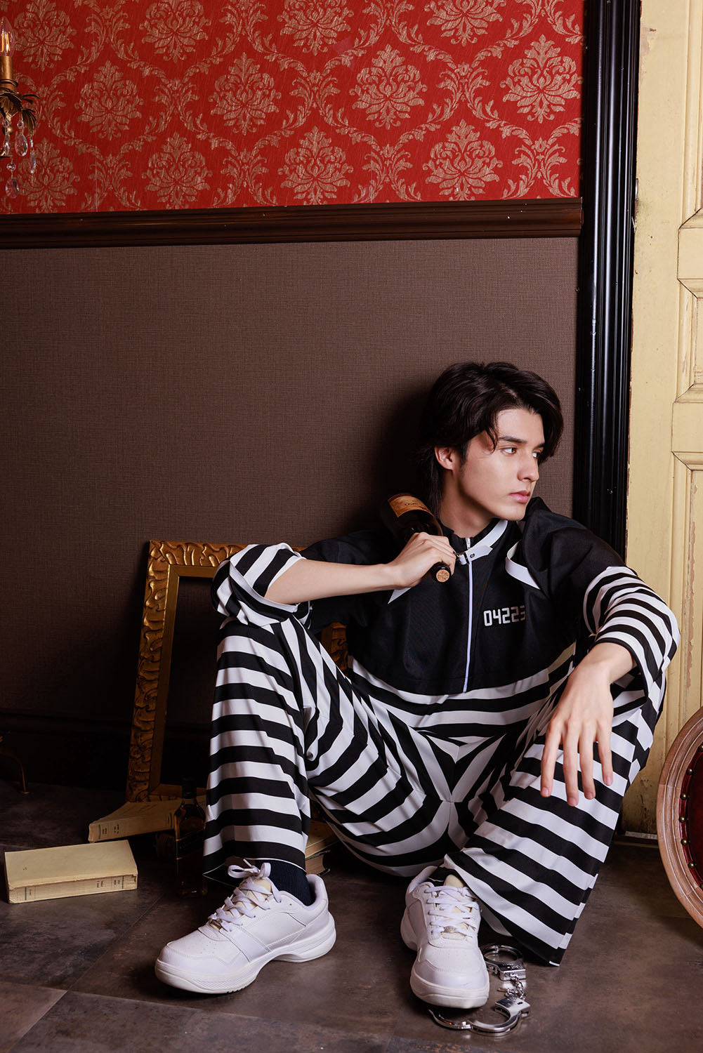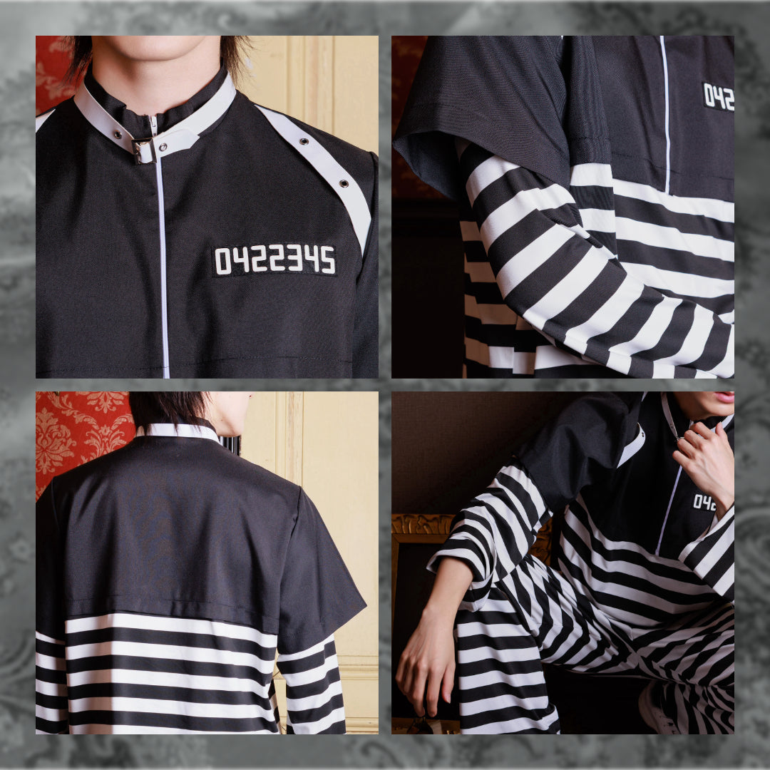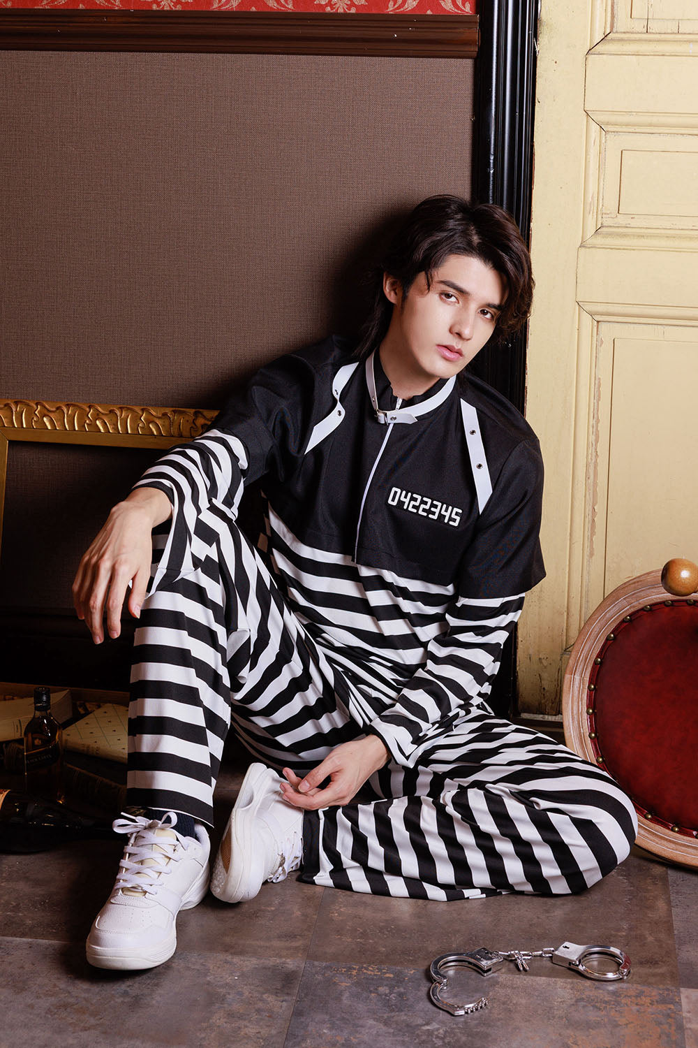 拘束風ベルトが効いた、クールで動きやすい囚人スタイルツヤ感素材×ストレッチで、着心地と存在感を両立ハロウィン仮装の定番、囚人のメンズコスチューム。 全身ボーダーのセットアップにアパレル風のレイヤード(重ね着)感を楽しめるカジュアルスタイル。 白の合皮素材を使用した拘束風ベルトがアクセントとなり、ハードな印象を演出。 生地にはツヤ感のあるストレッチ素材を使用しており、軽やかな着心地と動きやすさを両立しています。 ゆったりとしたサイズ感で体型を選ばず着用できます。 |