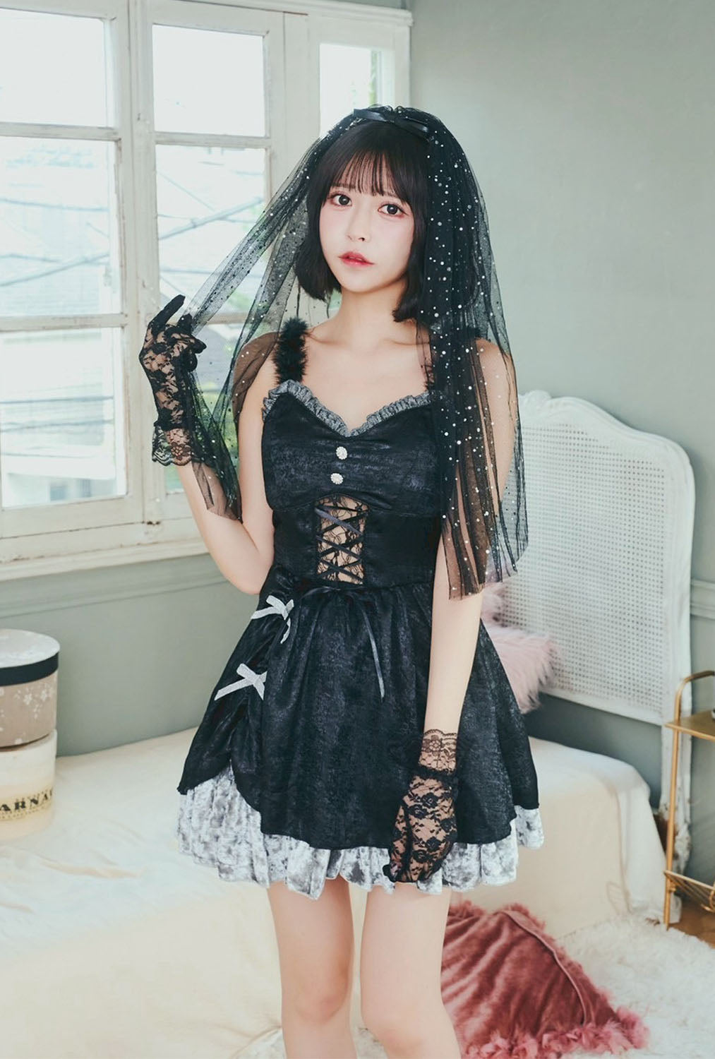 《JamsCollection・小此木流花ちゃん着用》コスプレ ハロウィン 花嫁 ノアールヴェール ブライド レディース フリーサイズ ブラック【クリアストーン】