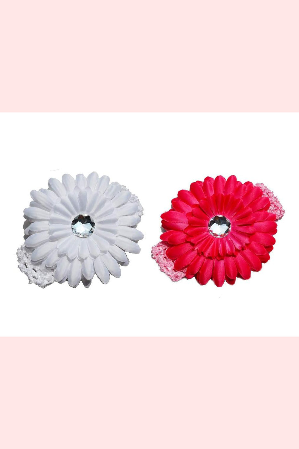小物 ベビー 赤ちゃん ヘッドアクセサリー フラワー ホワイト/ピンク 【クリアストーン】