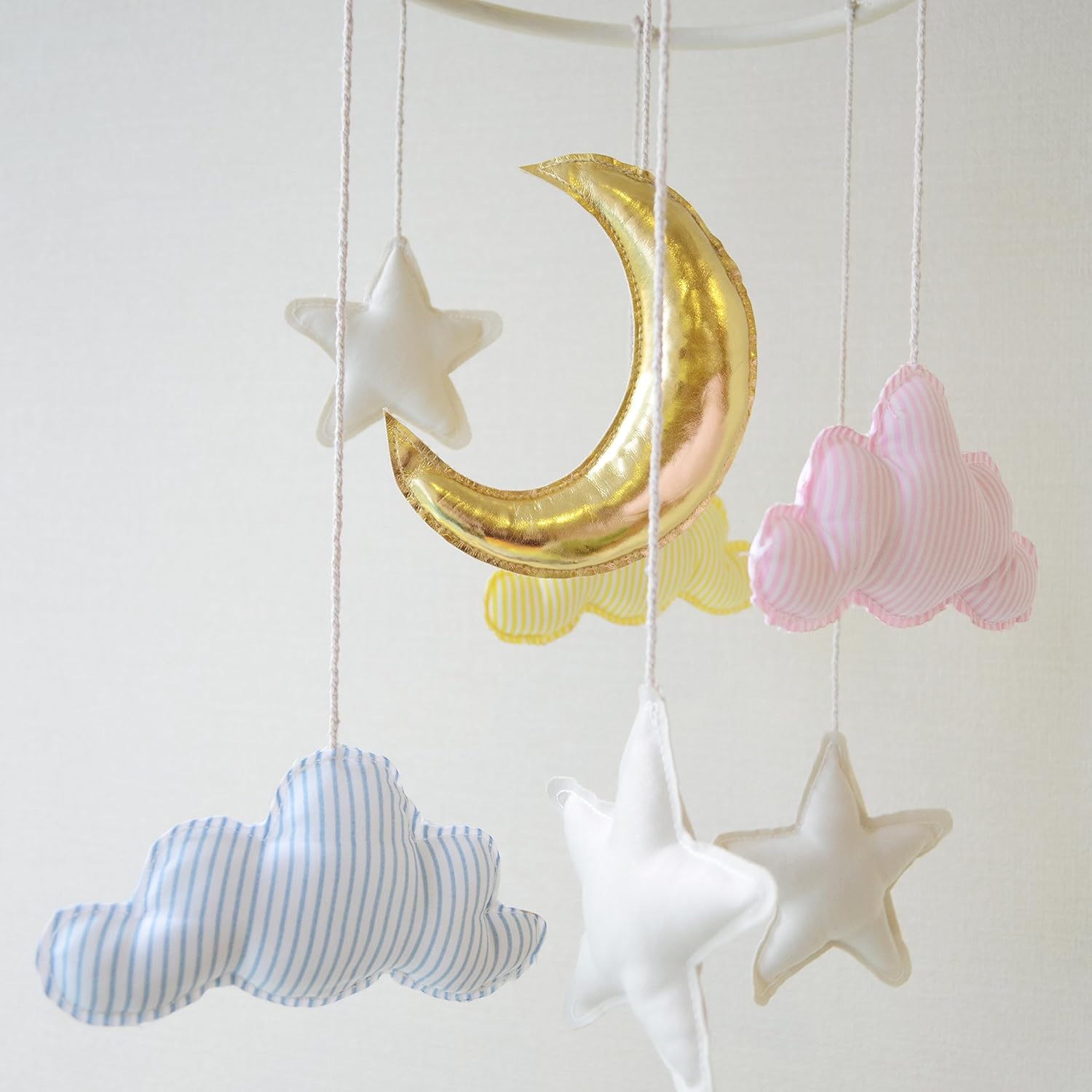 小物 モビール 月 星 雲 ベビーモビール ムーン モノトーン/パステル ゴールド【クリアストーン】