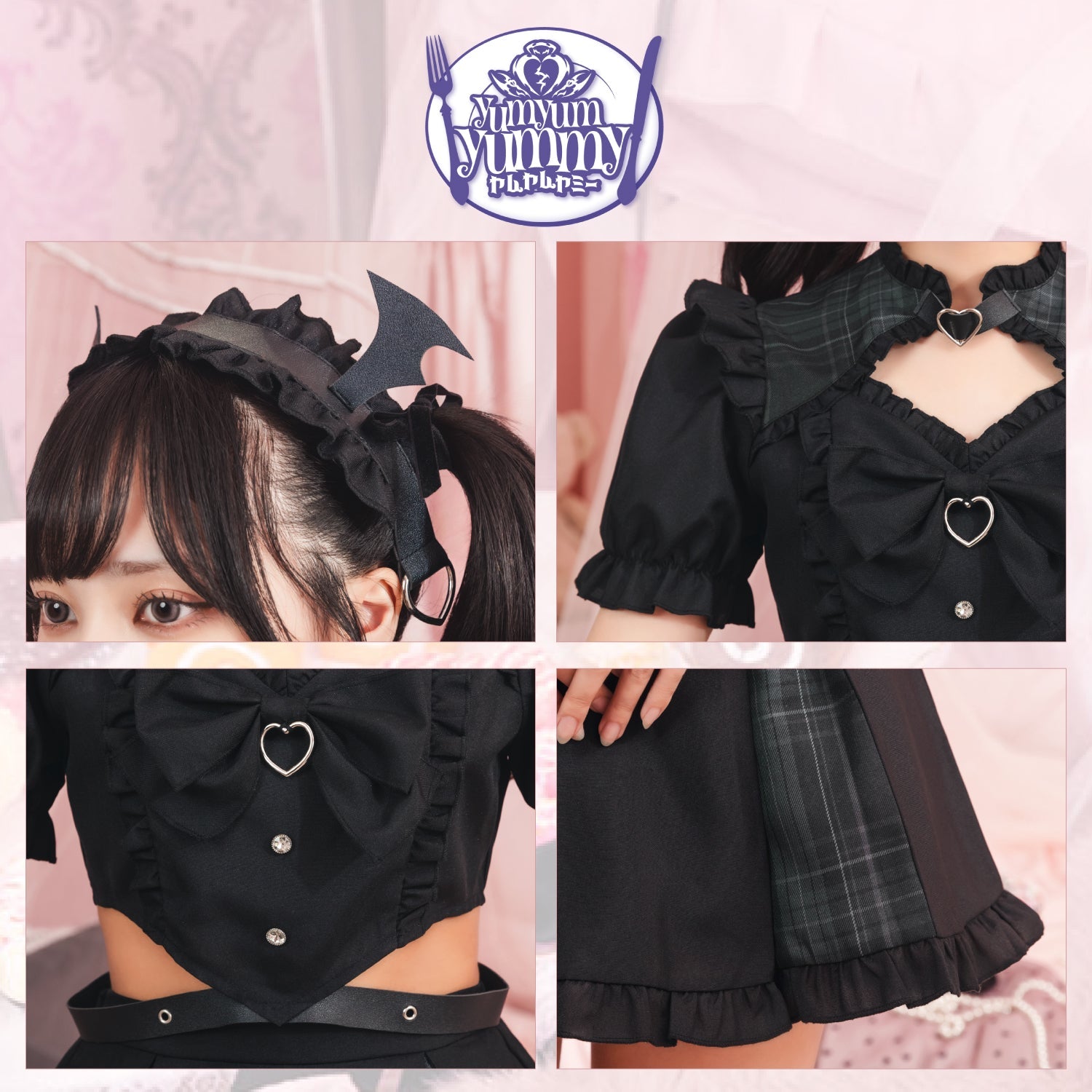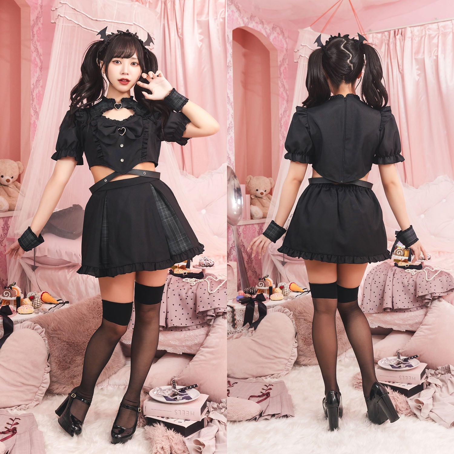 地雷系デザインがカワイイ♥黒を基調としたシリーズ『ヤムヤムヤミー』ダークグレーのチェック生地を使用した、セパレートタイプのコスチューム