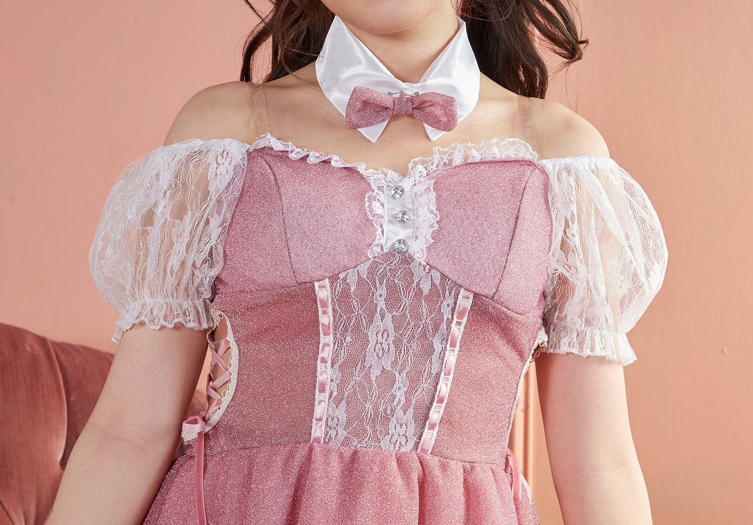 自撮り映えするよう顔回りにデザインポイントを置き、シルエットにこだわったワンランク上のコスチュームです。 ウエストのレースアップリボンはスタイルアップポイント。 大人っぽい肌見せも、フリルやレースでガーリーに。 オフショルでも着れる2WAY仕様。 胸とカフスにはビジューボタン付き。 スカート部分はソフトチュールでふんわり広がるシルエット。 |
