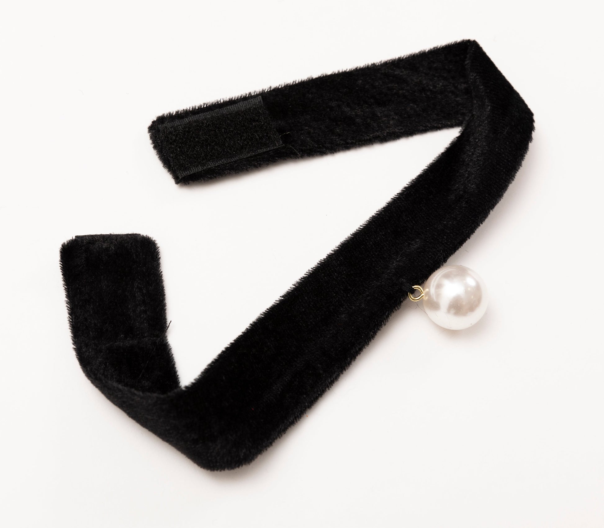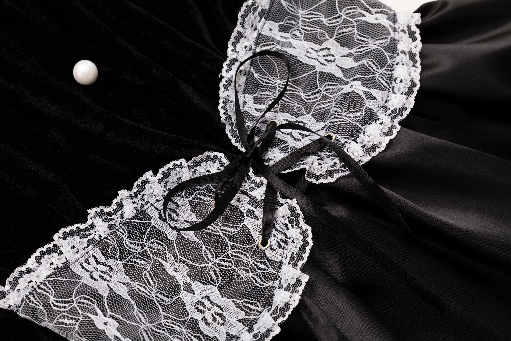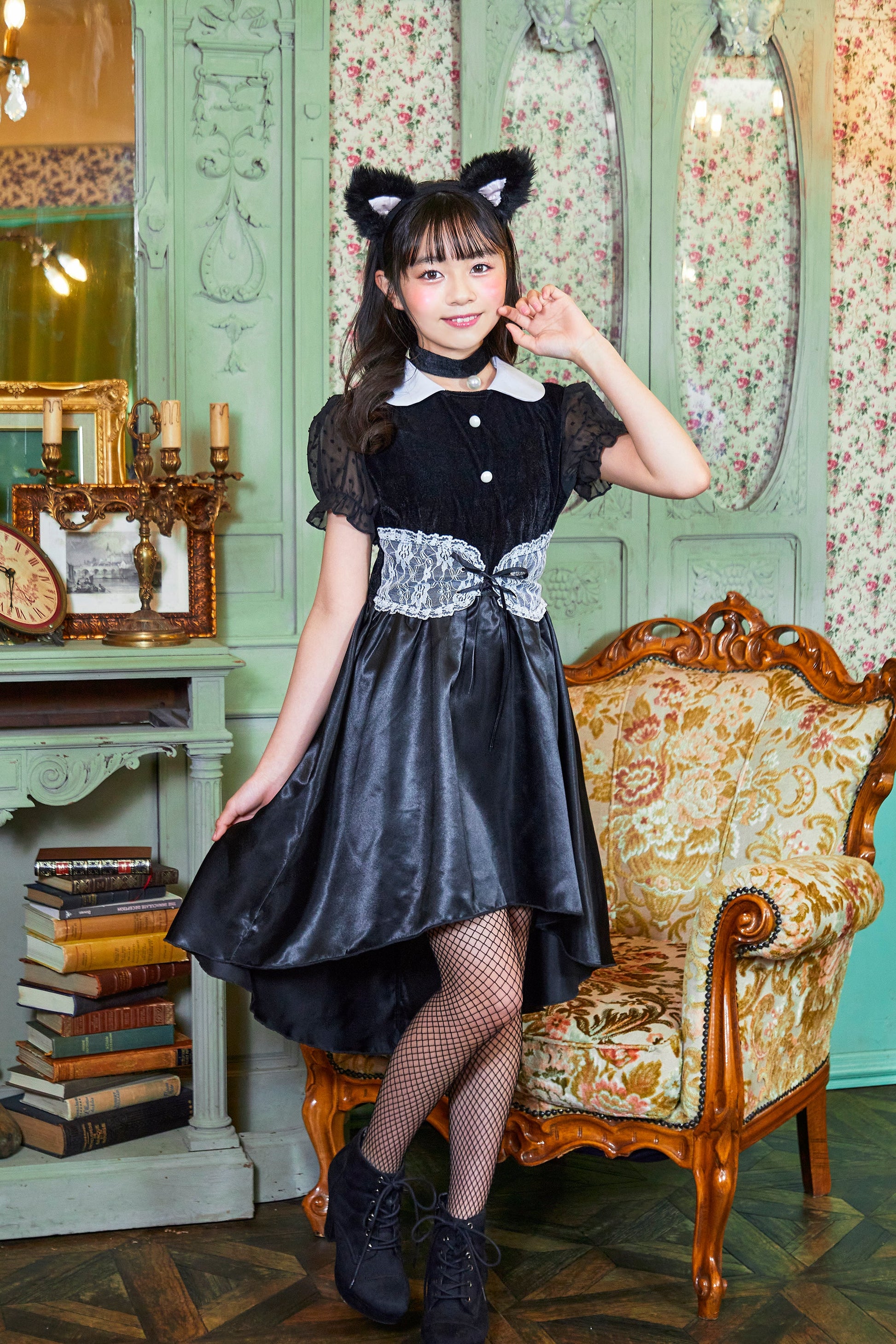 レース使いがガーリーなキャットコスチューム。パール付きチョーカーがポイント。