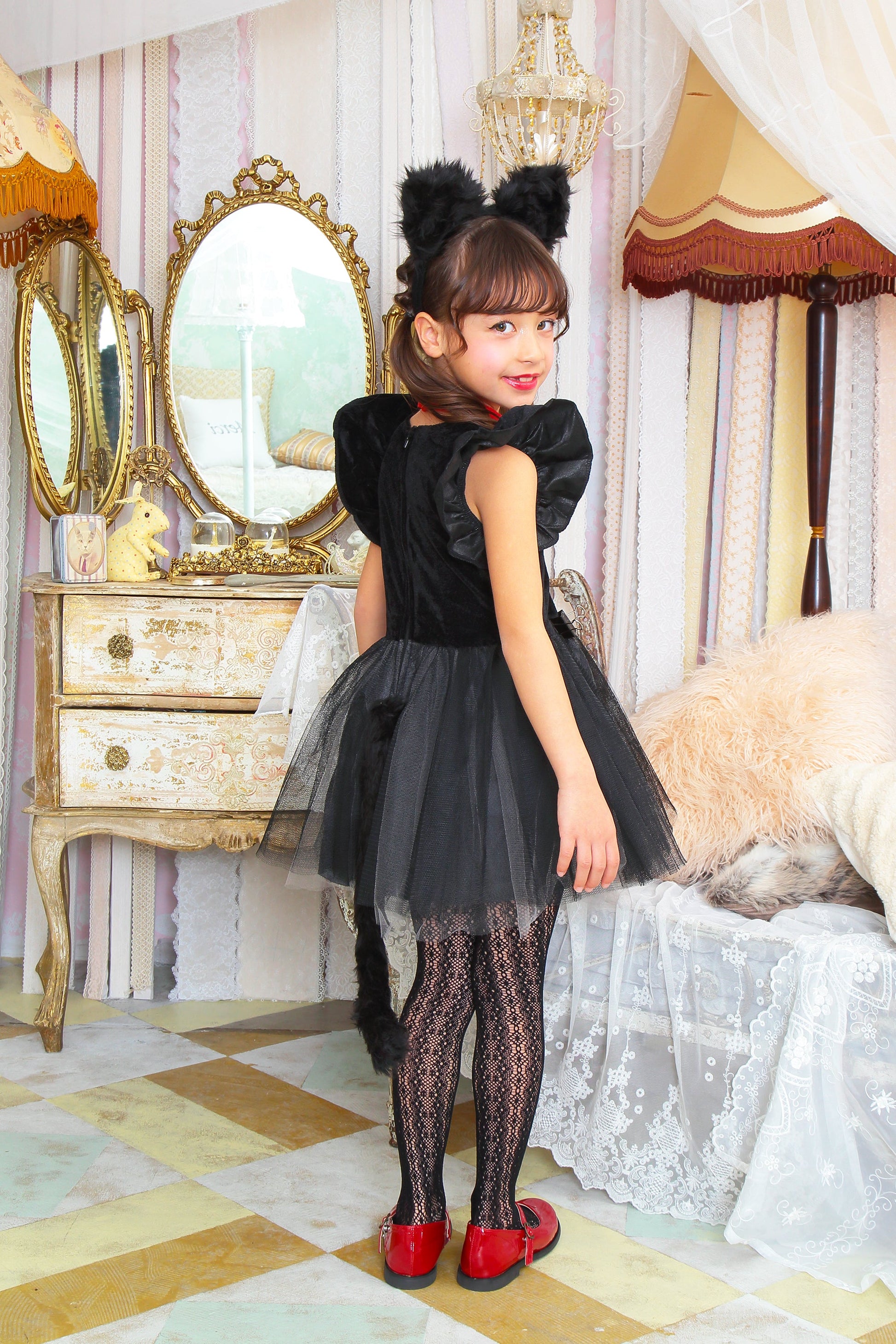コスプレ ベビー ねこ アニマル プティシャノワール 女の子 100cm/120cm/140cm ブラック 【クリアストーン】