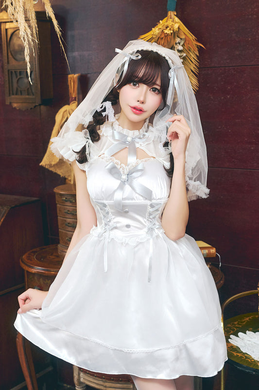 [NEW] コスプレ ねこ 和風 巫女 招猫巫女 レディース フリーサイズ ホワイト【クリアストーン】♡
