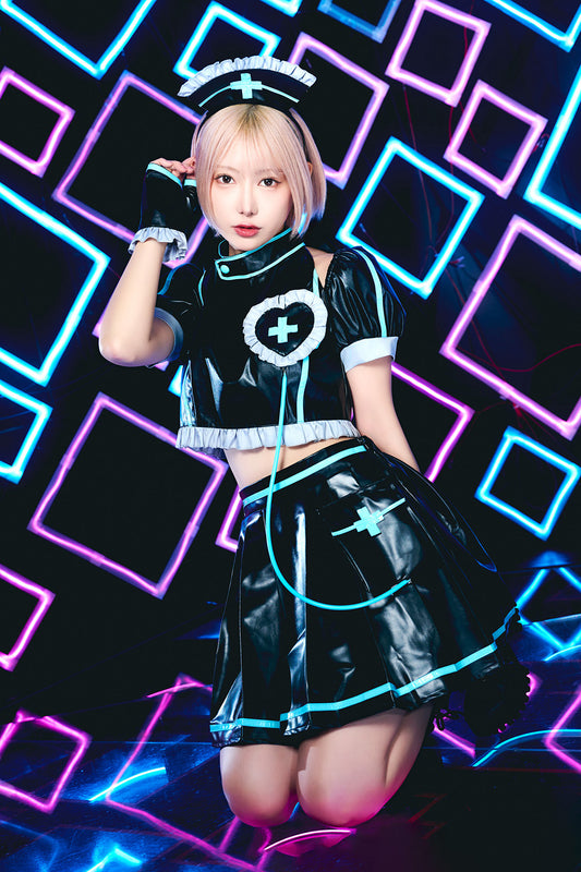 《JamsCollection着用》コスプレ ハロウィン ナース ナース服 フロイマイン 真夜中ねこナース レディース フリーサイズ ブラック【クリアストーン】