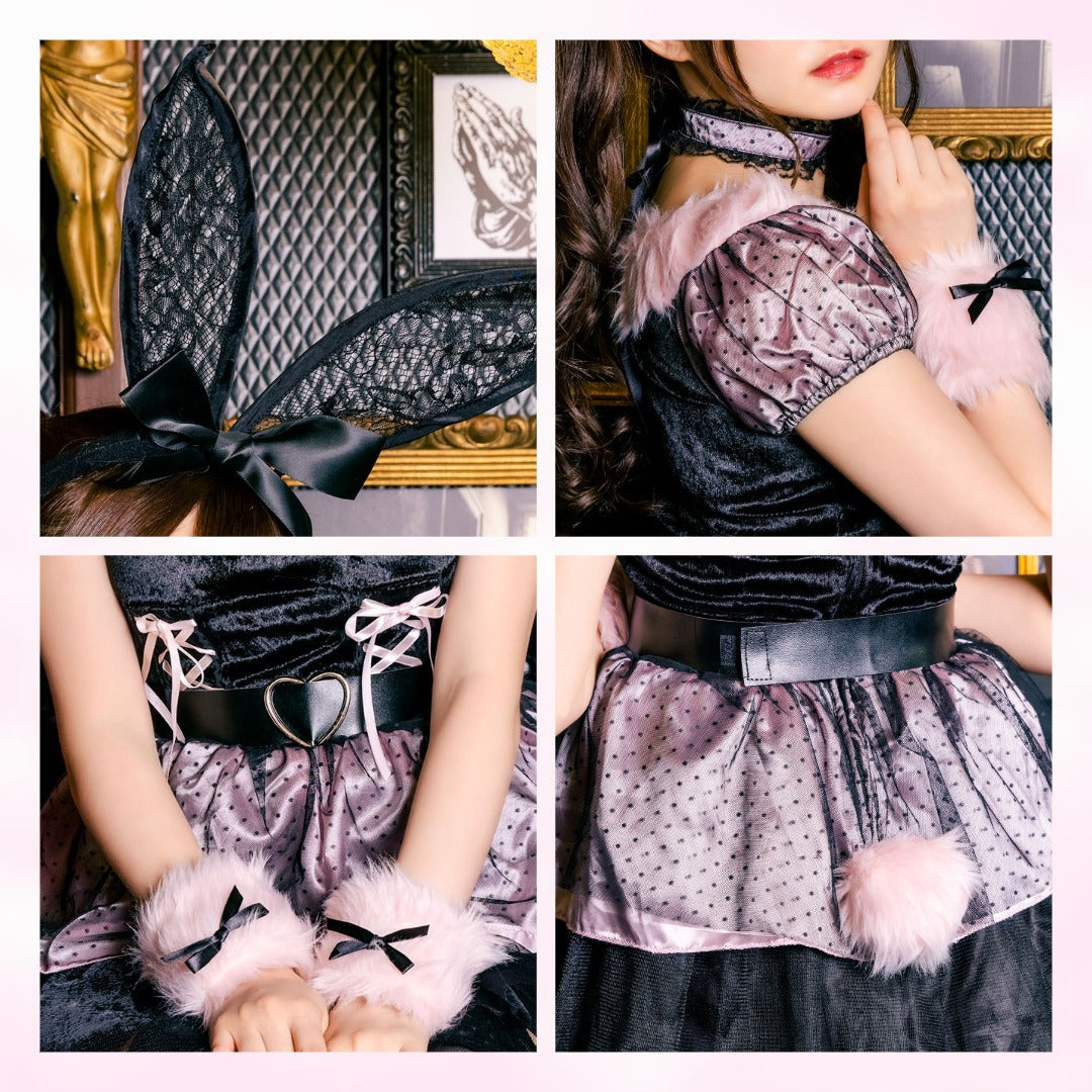 コスプレ ハロウィン うさぎ フロイマイン 愛情ピーチバニー レディース フリーサイズ ブラック【クリアストーン】♡