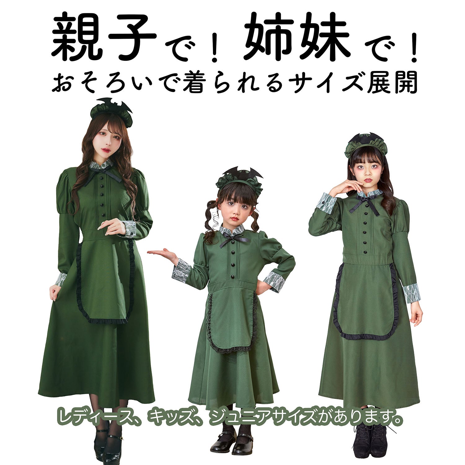 コスプレ メイド ハロウィン 洋館メイド レディース フリーサイズ グリーン/ボルドー【クリアストーン】♡