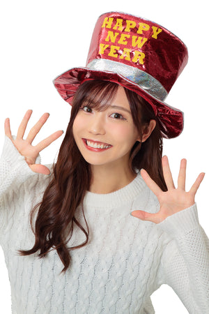 バラエティグッズ 帽子 正月 ハッピーニューイヤーシルクハット レディース フリーサイズ レッド【クリアストーン】