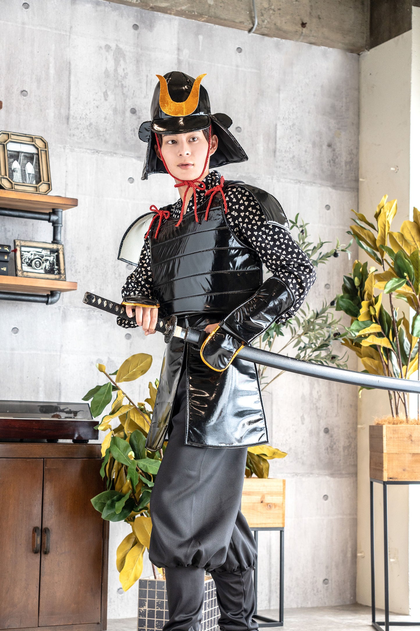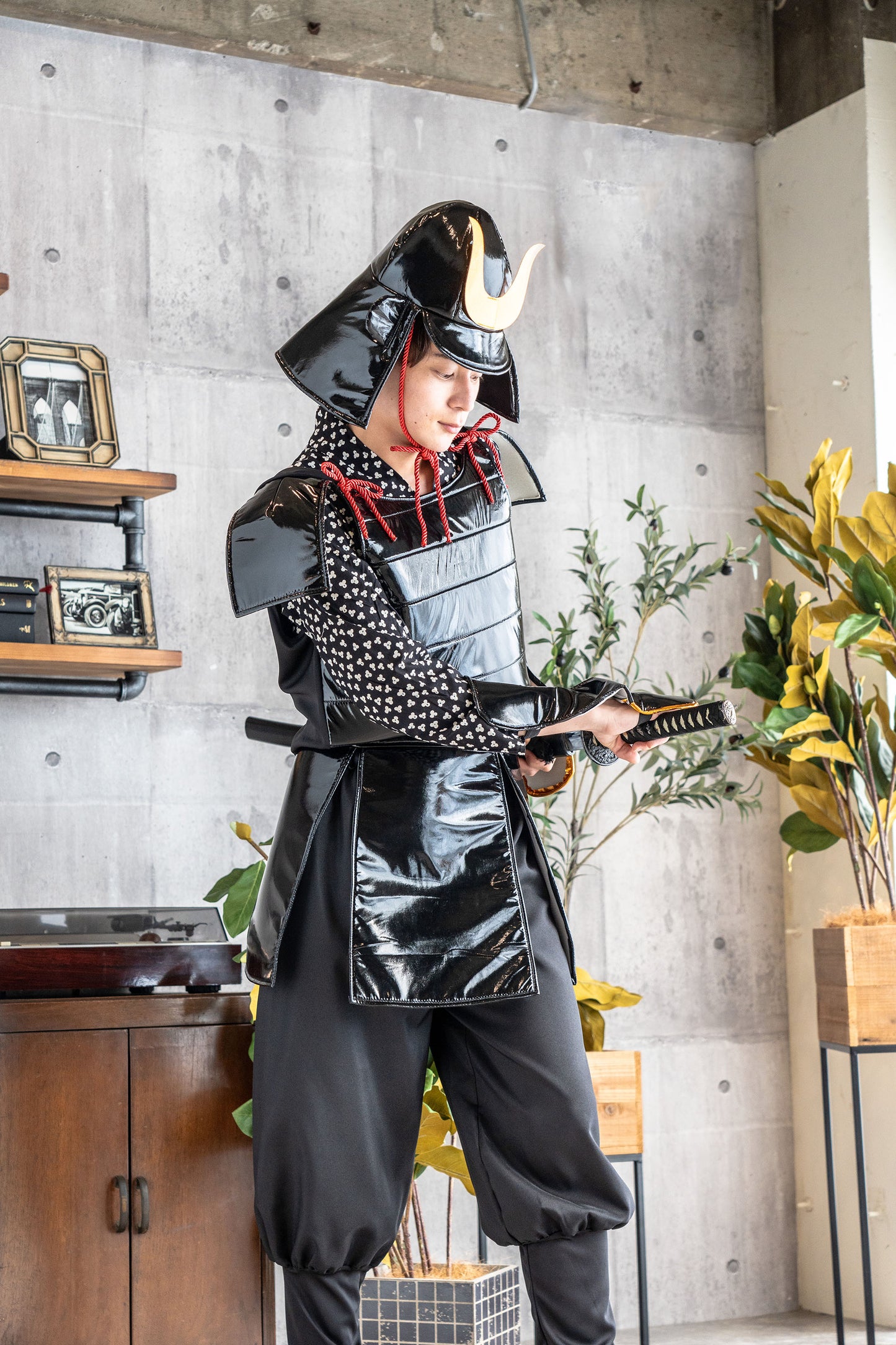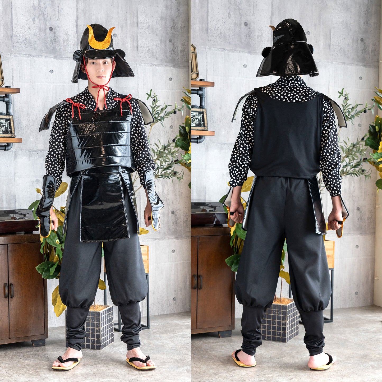 コスプレ 武士 鎧 和 MENコス 武士の鎧 メンズ フリーサイズ ブラック【クリアストーン】