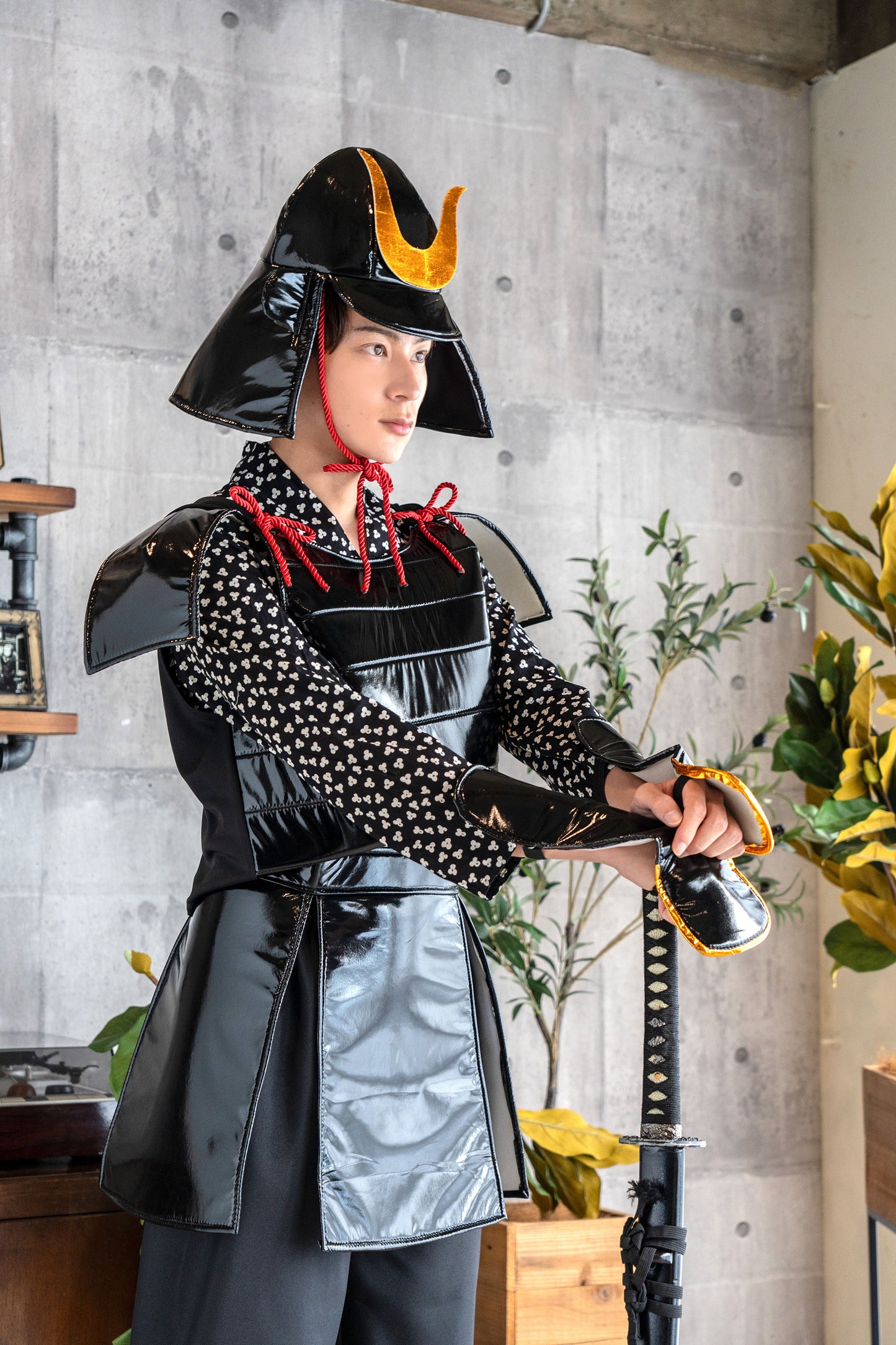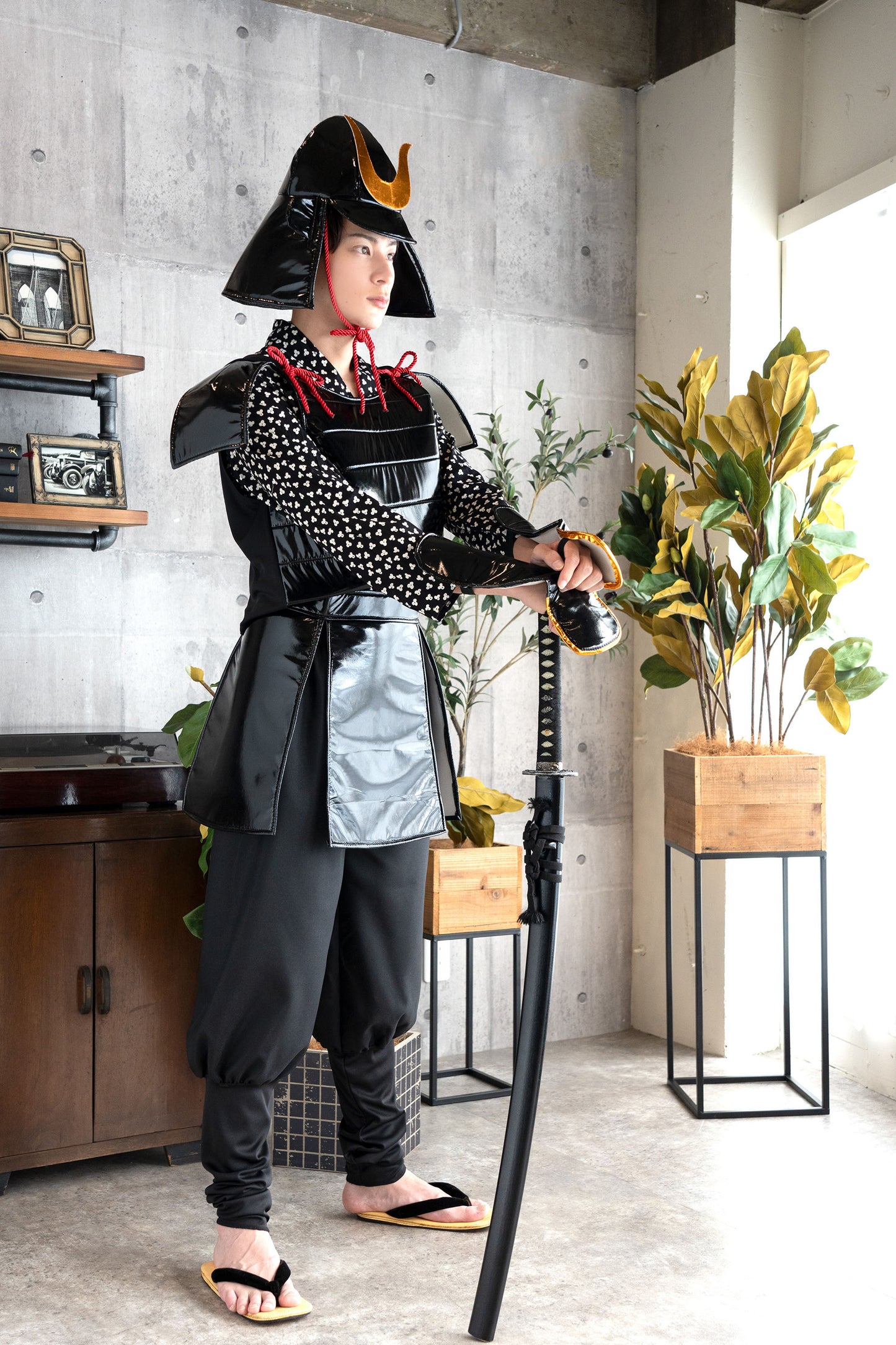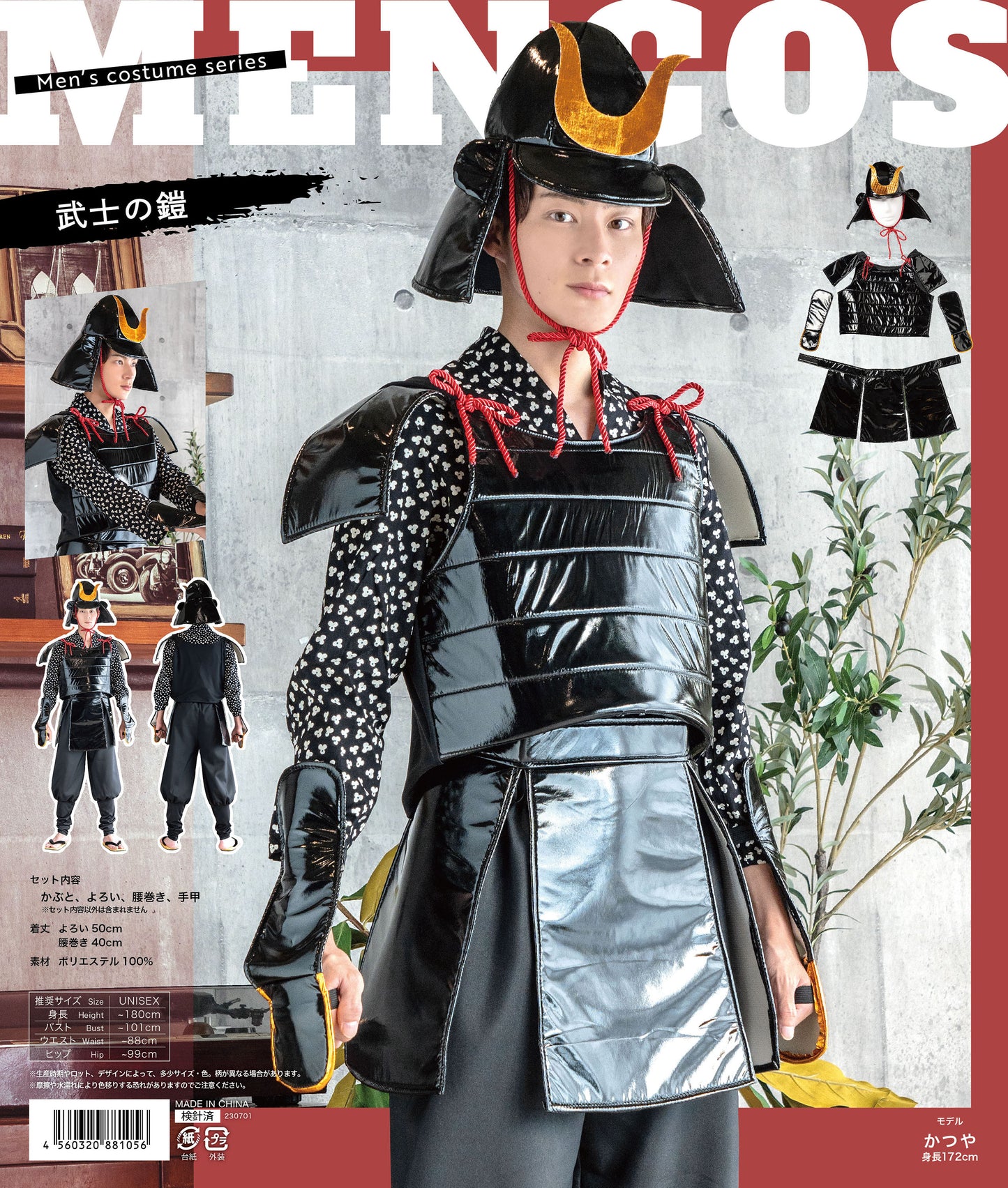 コスプレ 武士 鎧 和 MENコス 武士の鎧 メンズ フリーサイズ ブラック【クリアストーン】