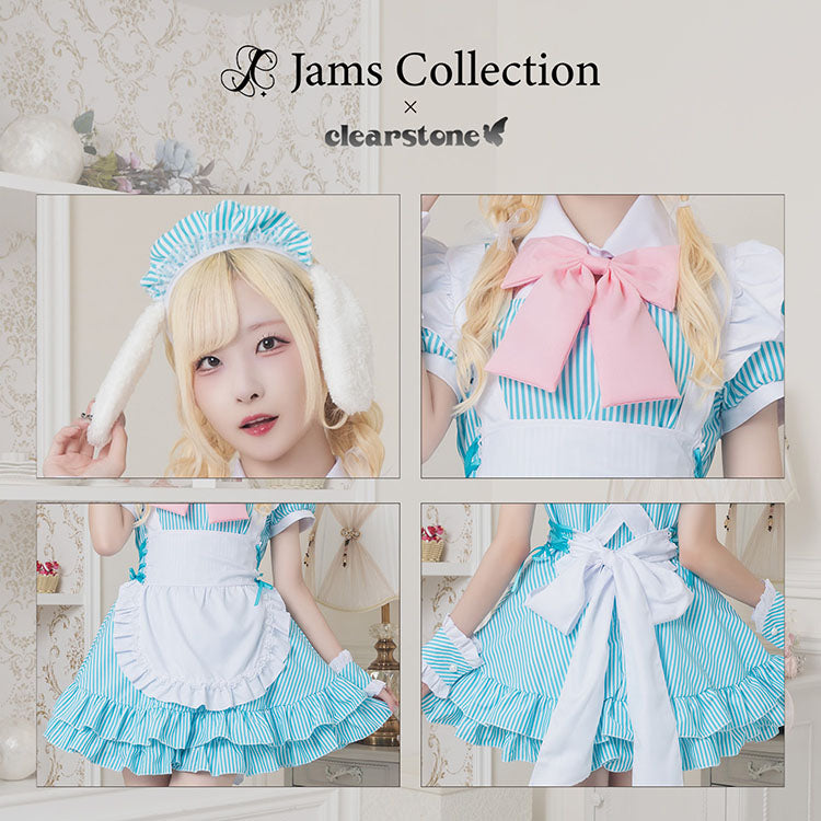 《JamsCollection着用》コスプレ ハロウィン メイド いぬ アニマル リリパレ 白いぬストライプメイド レディース フリーサイズ ブルー【クリアストーン】