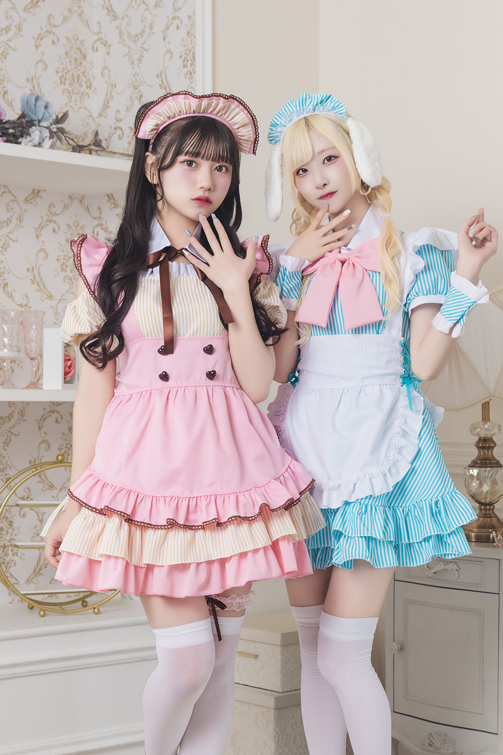 フリルの大きさやバランスにこだわってデザインしています。 セット内容は全部で7点! 付け襟・カフス・リボンブローチなど、写真映えする顔まわりの小物も充実。 水色のワンピース部分はストライプの生地を使用しており、爽やかな印象です。 パニエ内蔵なので、中のチュールを広げるとふわっと広がり、ボリュームが出ます。 エプロンの両サイドは編み上げになっているのでキュッと絞れば細見え効果もあります。 衣装として、またハロウィンなどのイベントで着用するのもおすすめです。 #リリパレ をつけてSNSに投稿してね♪ |