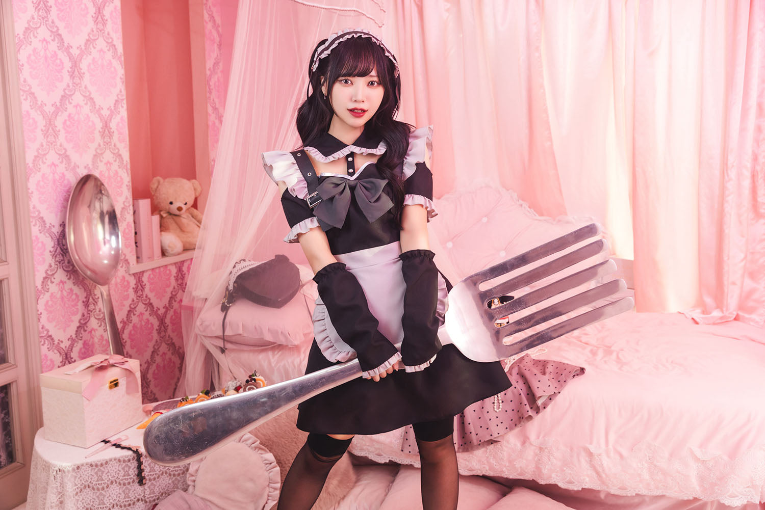 地雷系デザインがカワイイ♥黒を基調としたシリーズ『ヤムヤムヤミー』グレー×ブラックがおしゃれなワンピースタイプのメイド服