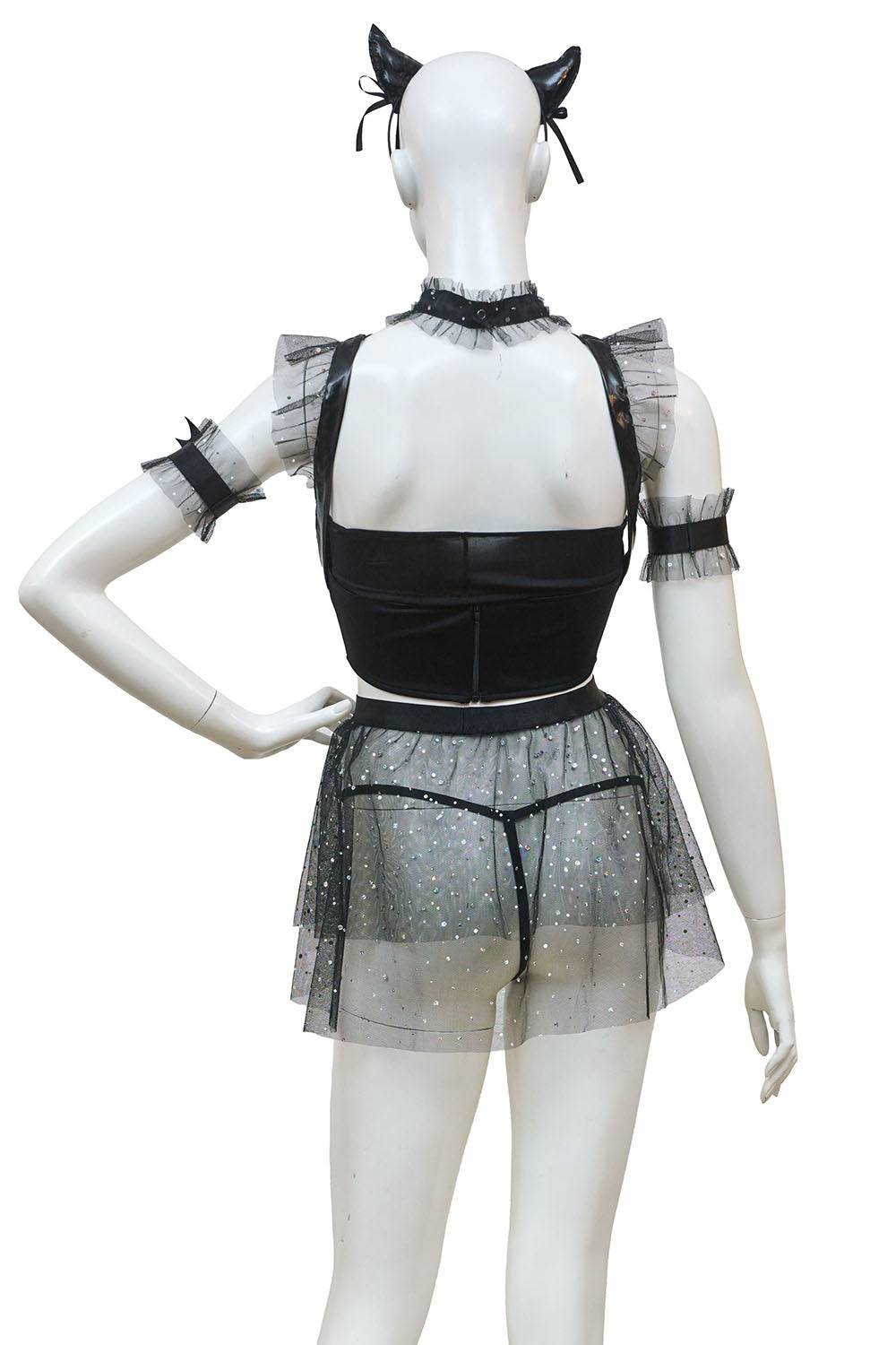 上品に、自由に、私を魅せる「ロイヤルヌーディーシリーズ」ラメ入りチュールが揺れる、華やかで魅惑的な小悪魔オリジナルデザインで大胆なアレンジが楽しめる、プレミアム仕様のシリーズ「ロイヤルヌーディー」。 エナメル素材のデビルカチューシャにリボンをあしらったキュートなサキュバスコスチューム。 フリルやカバースカートには、大粒ラメ入りチュールを使用し、華やかさをプラス。 バストを囲むゴムストラップが、視線を惹きつけるセクシーなデザイン。 ウエストの編み上げ部分は、肌がほんのり透けて見える仕様で、抜け感を演出。 ブラトップは、ニップレスがほんのり透ける伸縮素材で、センシュアルな雰囲気に。 スカートのウエストはゴム仕様。 お好みのブラトップやミニパニエと組み合わせれば、さらに自由なスタイリングが楽しめ、露出の調整も可能なデザインです。 アレンジ次第で様々なスタイルに変化します。 |