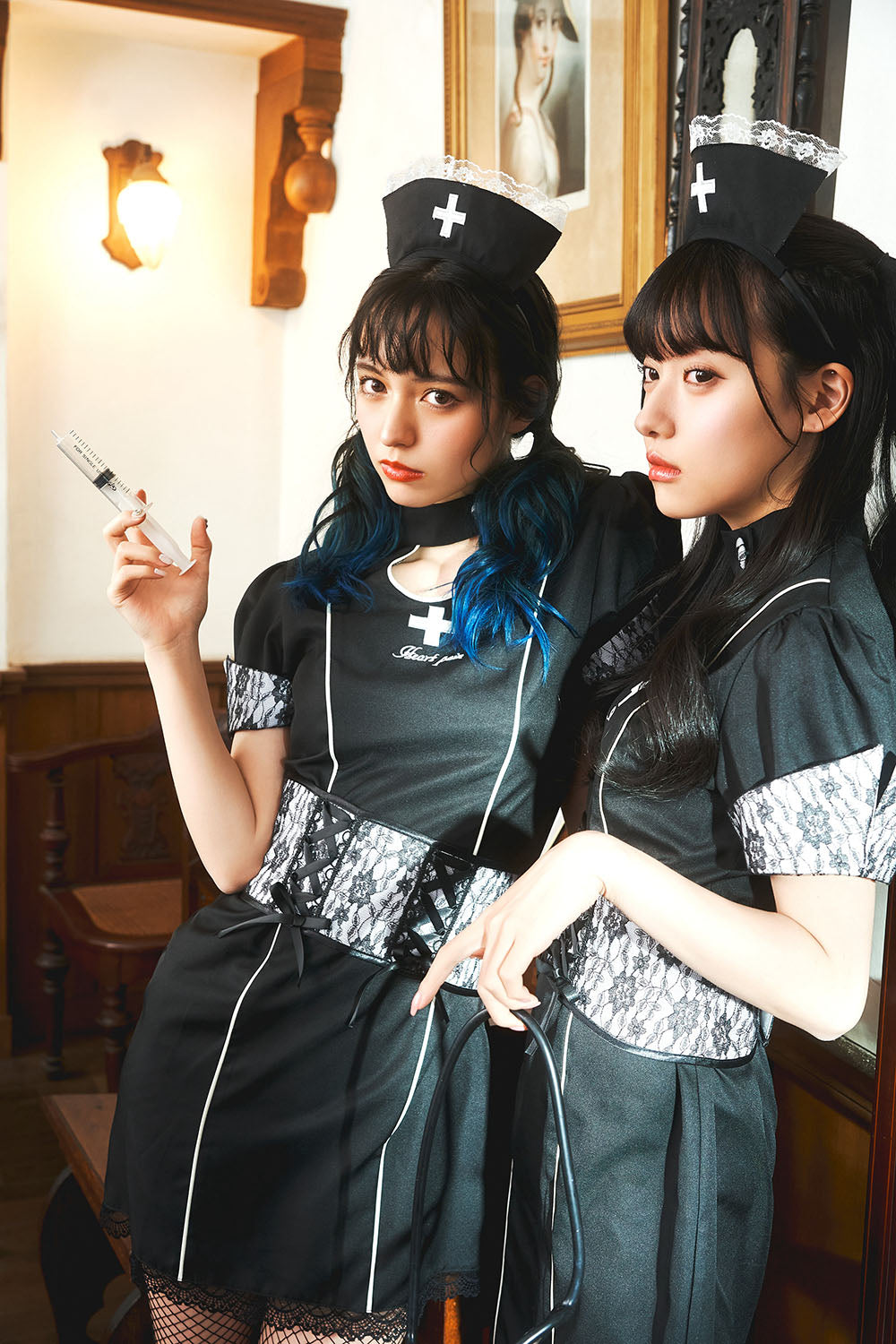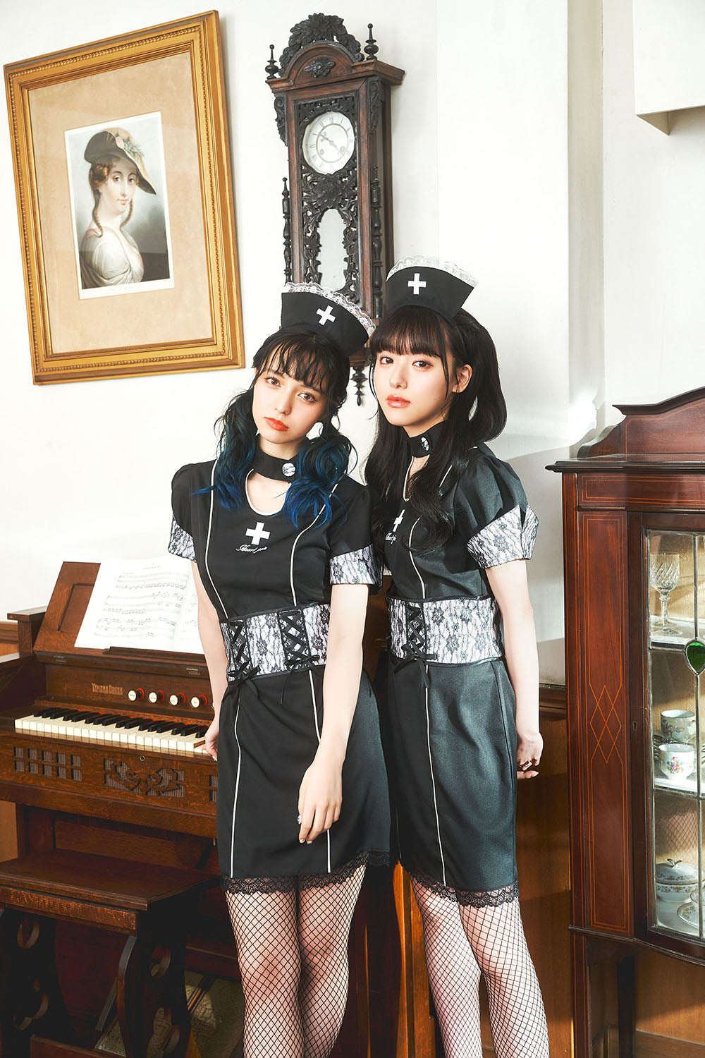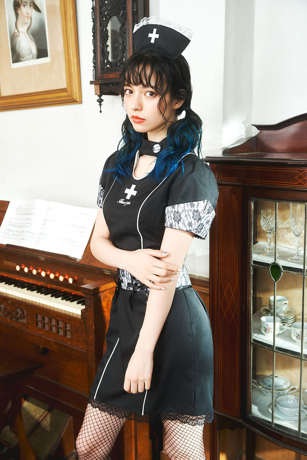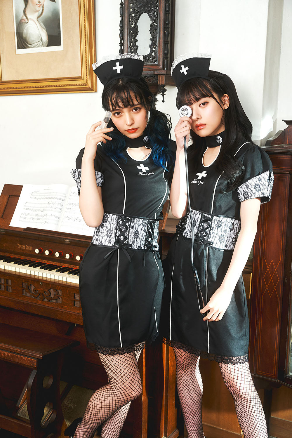 ガーリーでアンニュイな「Moontalk(ムーントーク)」シリーズタイトなシルエットにウエストをマークしたナースコスチューム