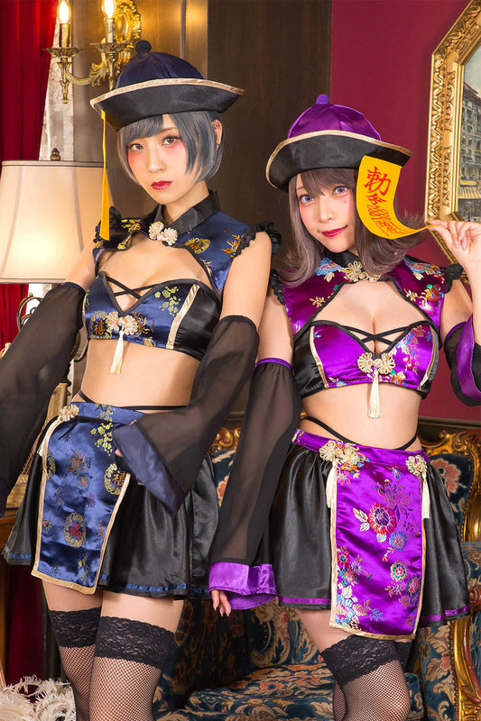 《篠崎こころちゃん着用》 コスプレ ハロウィン 和風 ハイカラニズム キョンシー レディース フリーサイズ パープル【クリアストーン】♡