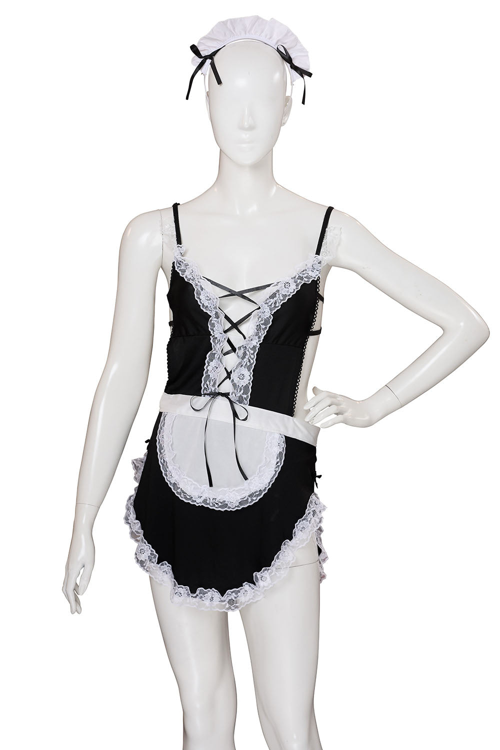 [New]コスプレ SecretRose レースアップメイド レディース フリーサイズ ブラック【クリアストーン】♡