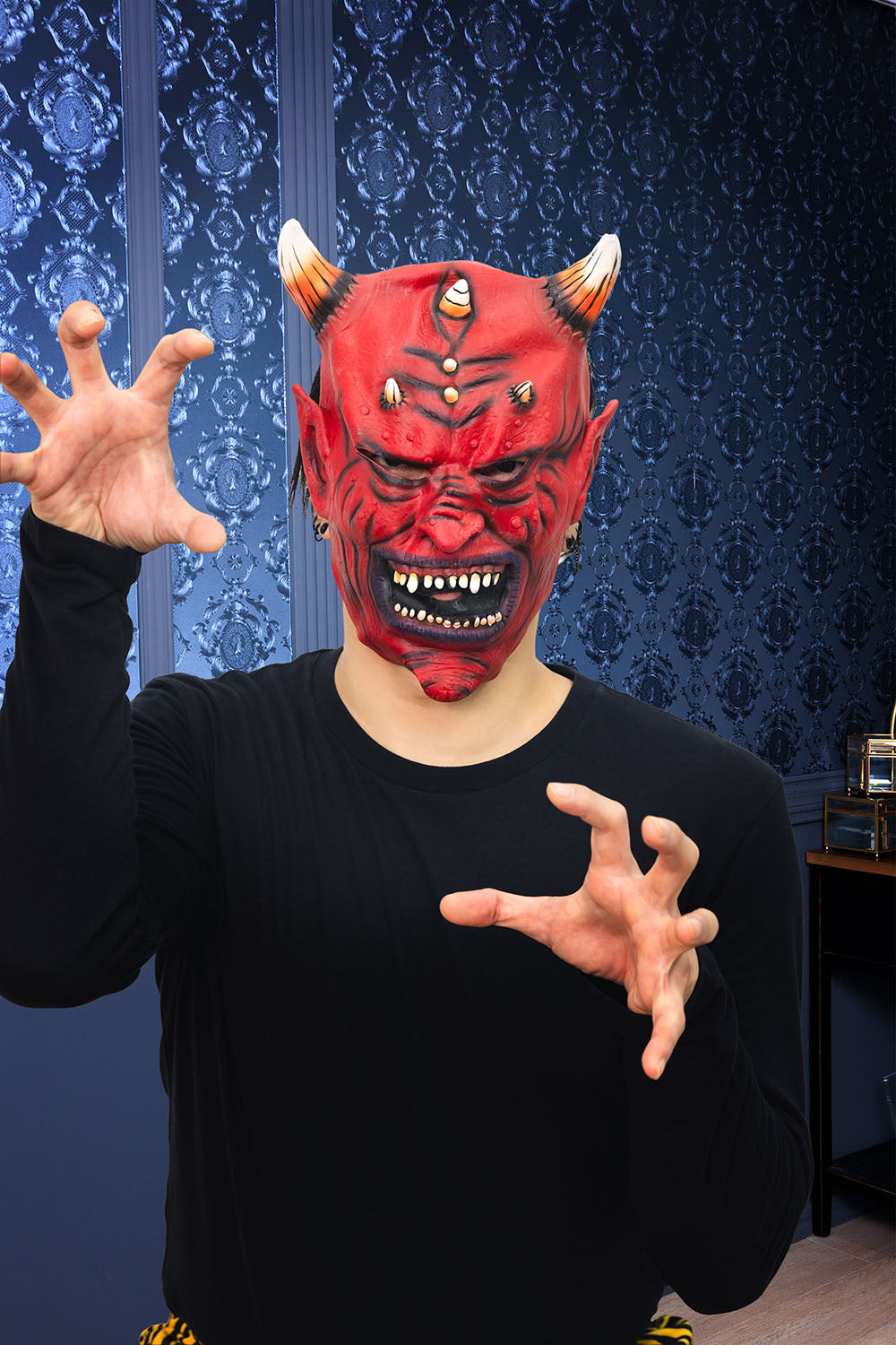 怖さ満点のリアル鬼マスク立体的な角で迫力ある節分仮装に本格的なデザインが特徴の怖い鬼のラバーマスク。 立体的に作られた角が存在感を放ちます。 正面をしっかり覆いながら、背面は開いた「前面のみ覆うマスク」仕様のため、息苦しくなく簡単に着脱できます。 節分やハロウィンをはじめ、さまざまなイベントで活躍するアイテムです。 |