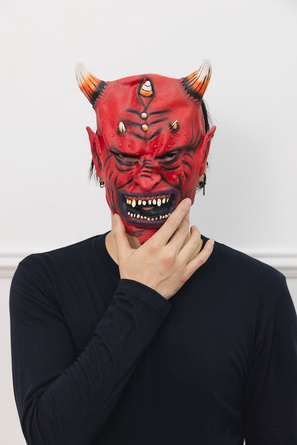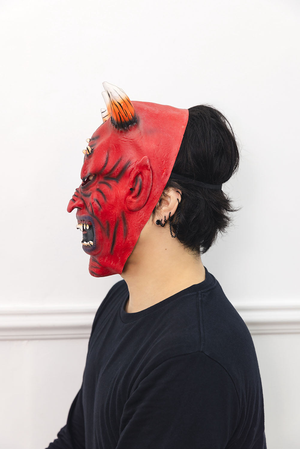 [New] コスプレ小物 節分 怖い鬼ラバーマスク ユニセックス フリーサイズ レッド【クリアストーン】