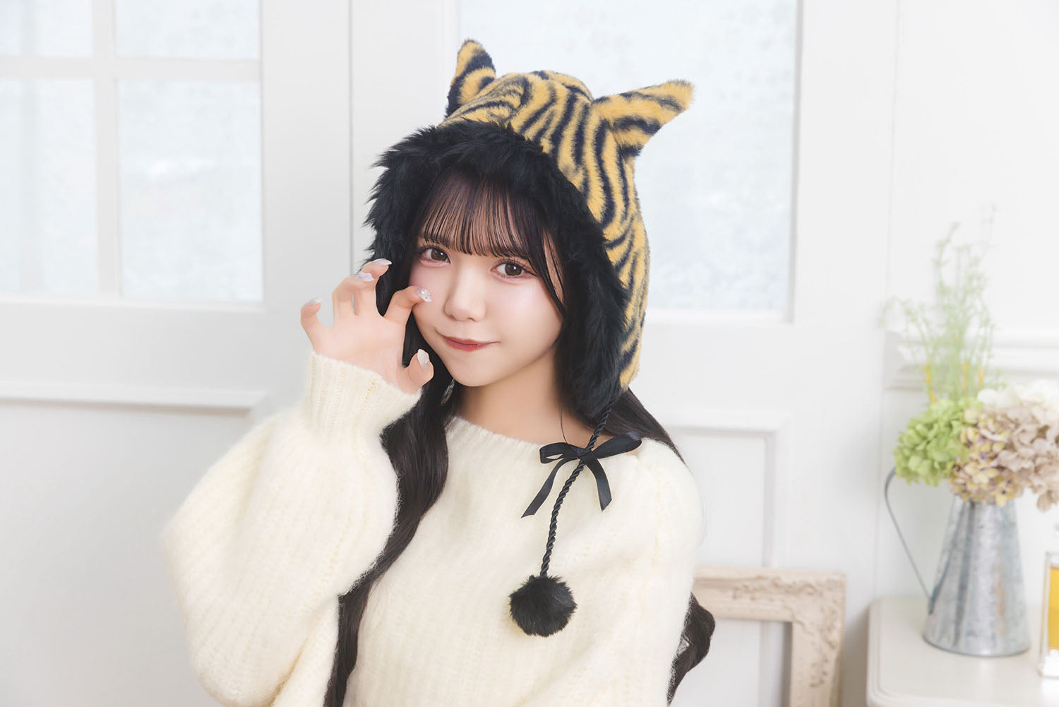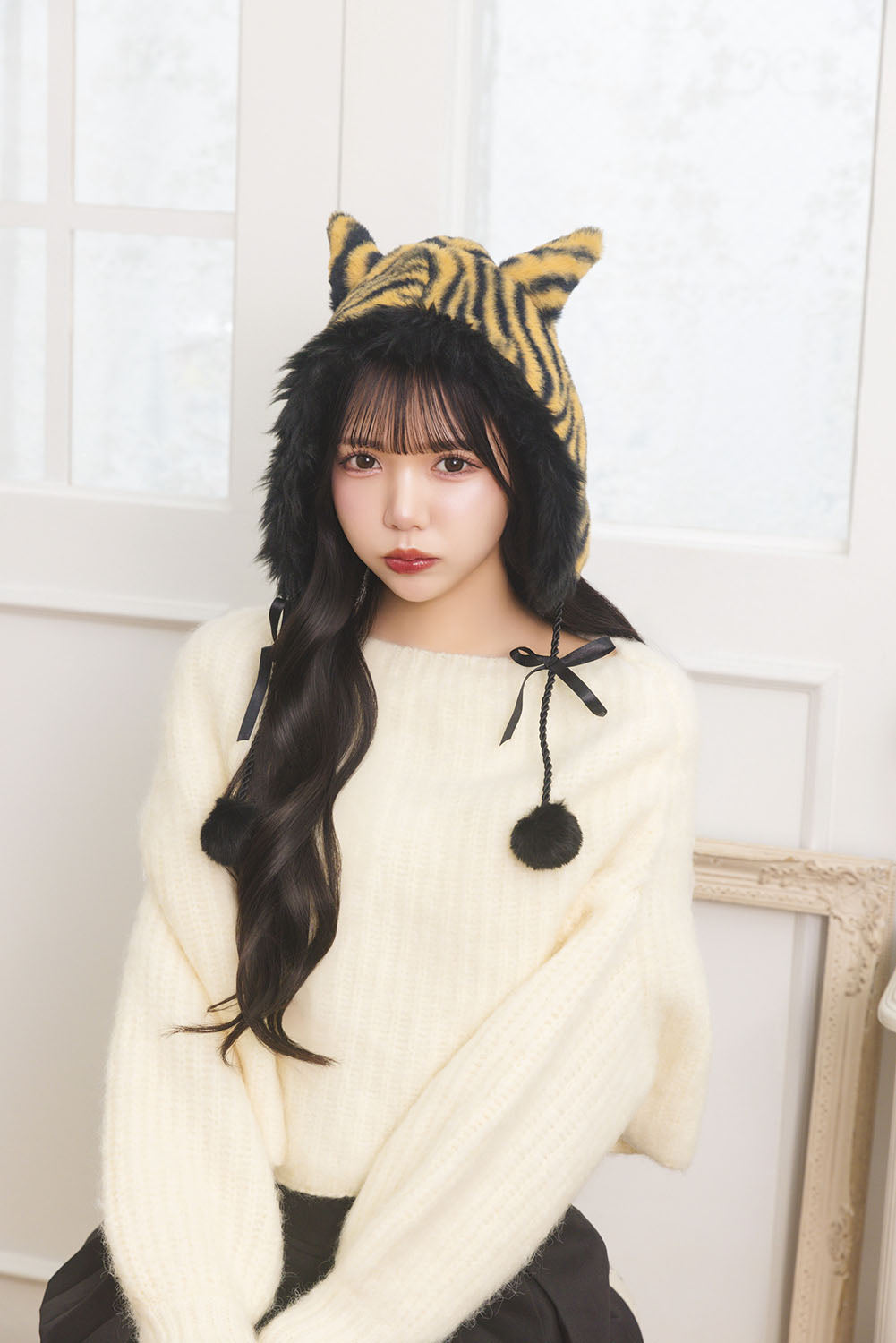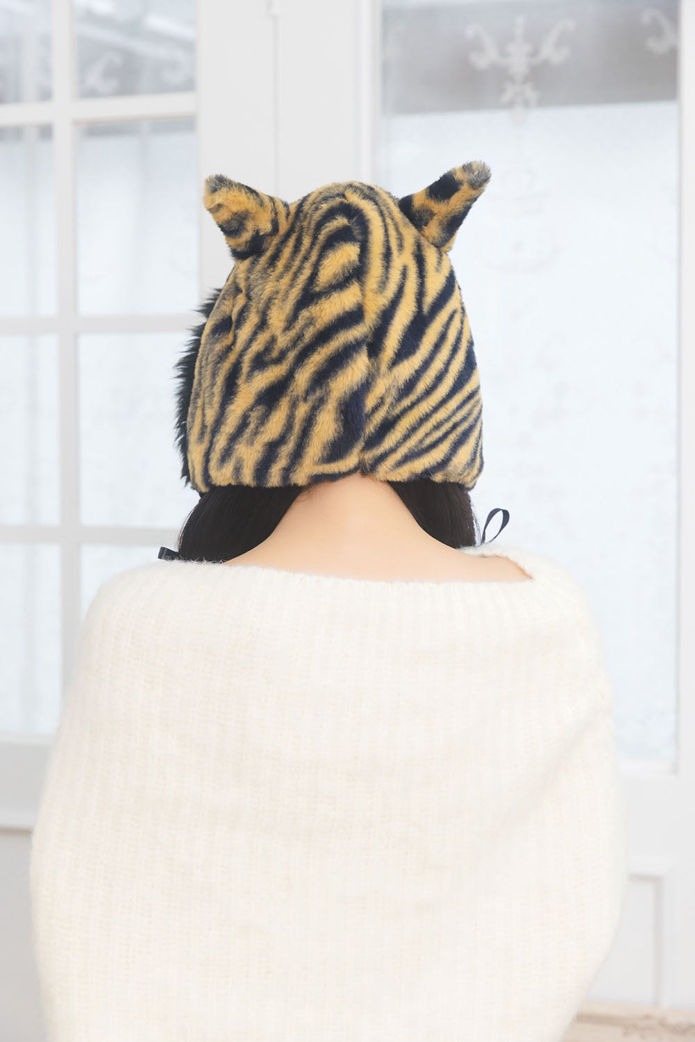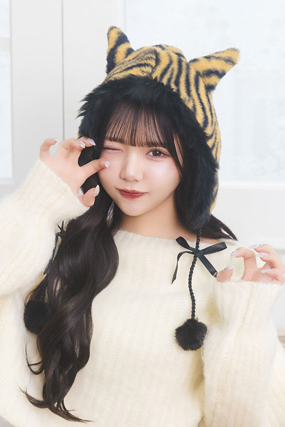 もふもふしたトラ柄ファー生地を使用したかぶりものです。