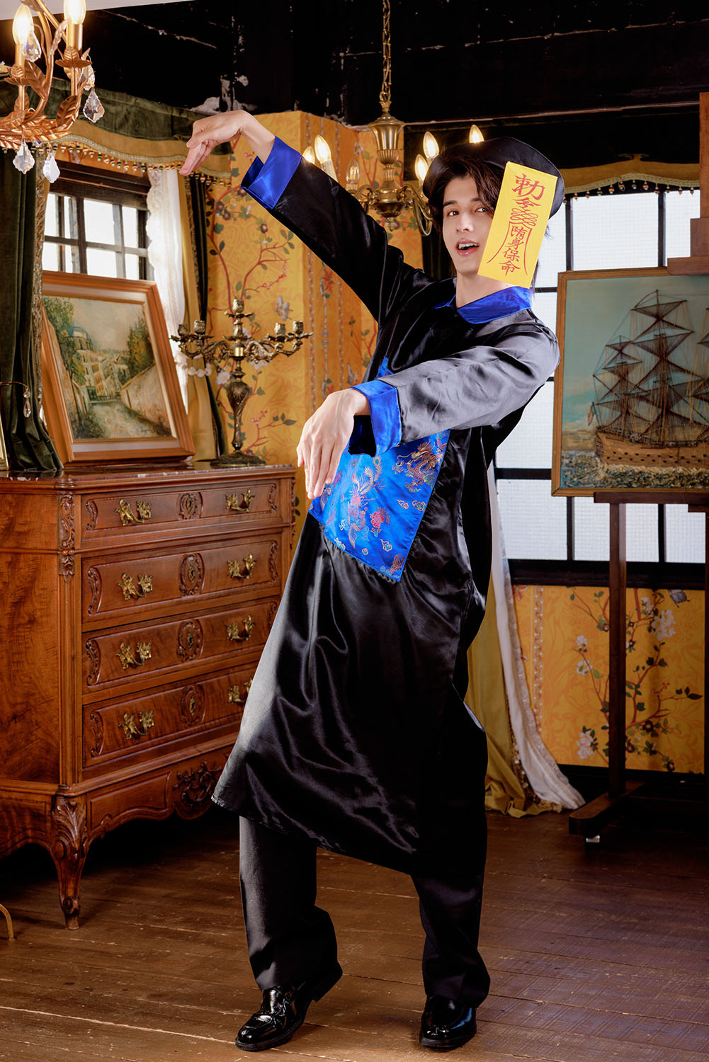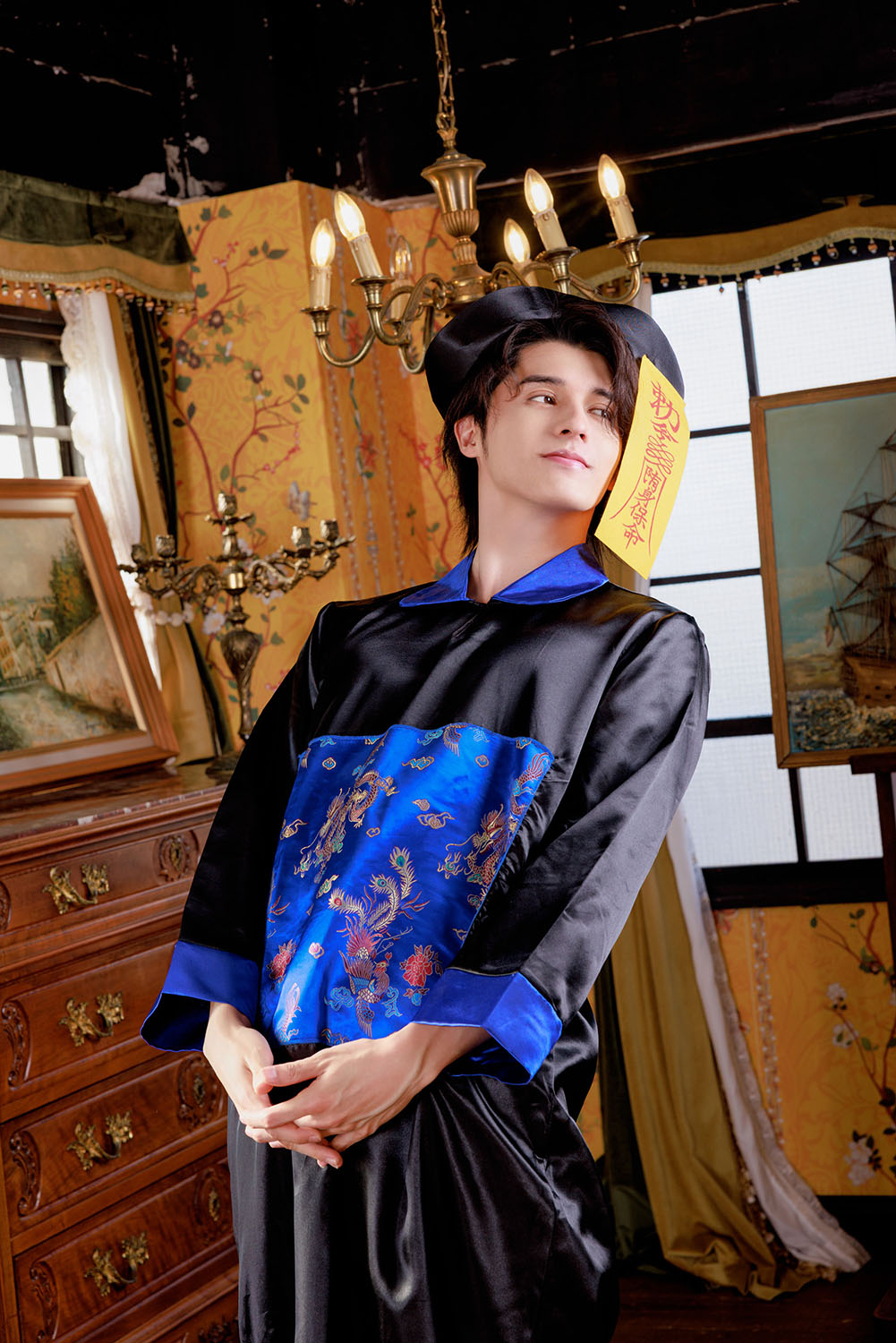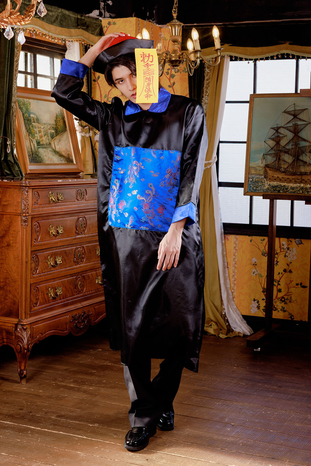≪スタンミさん着用≫ コスプレ 仮装 ハロウィン キョンシー メンズ フリーサイズ ブルー 【クリアストーン】