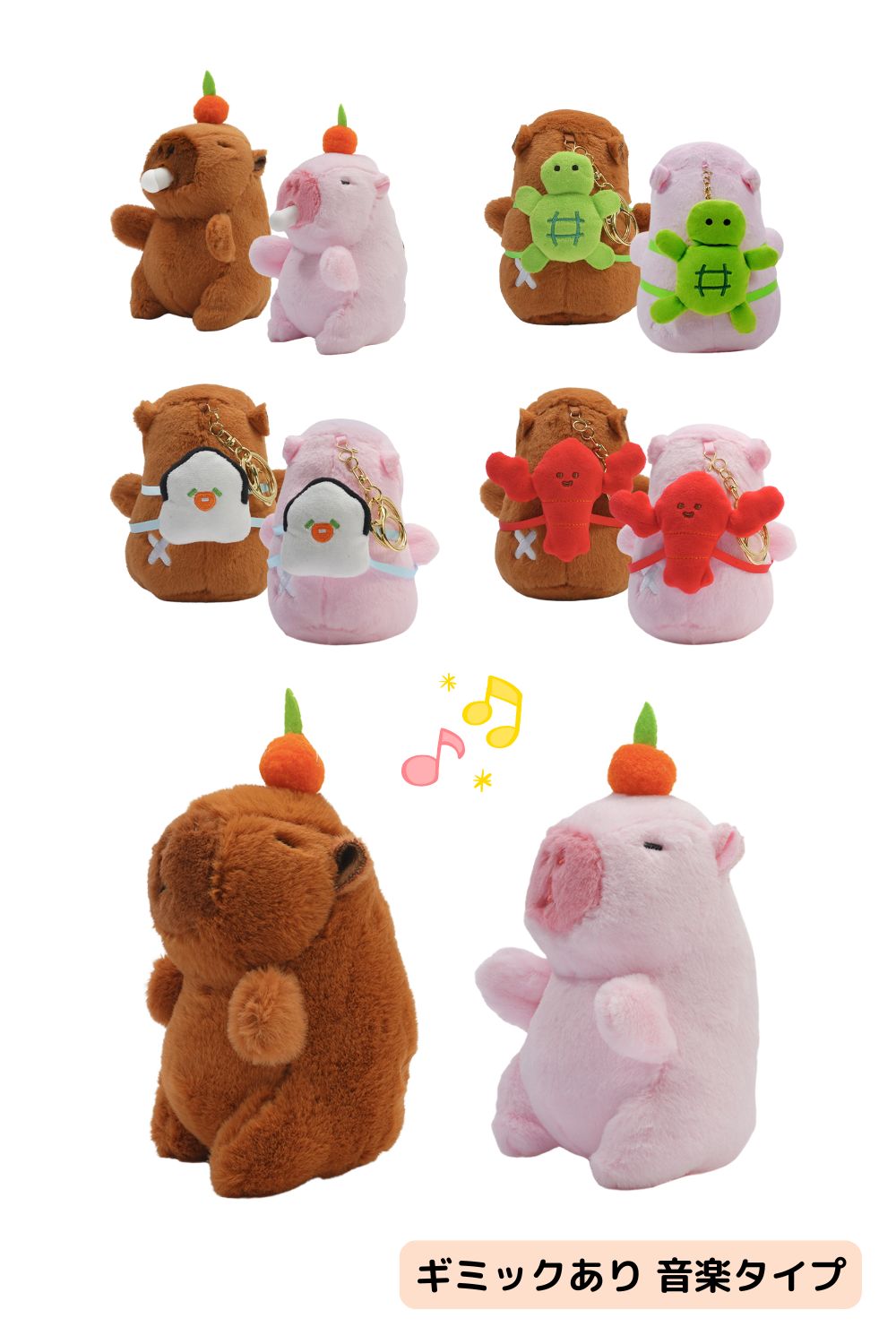 [NEW] ぬいぐるみ キーホルダー カピバラ チャビマル 音楽タイプ ブラウン/ピンク 【クリアストーン】