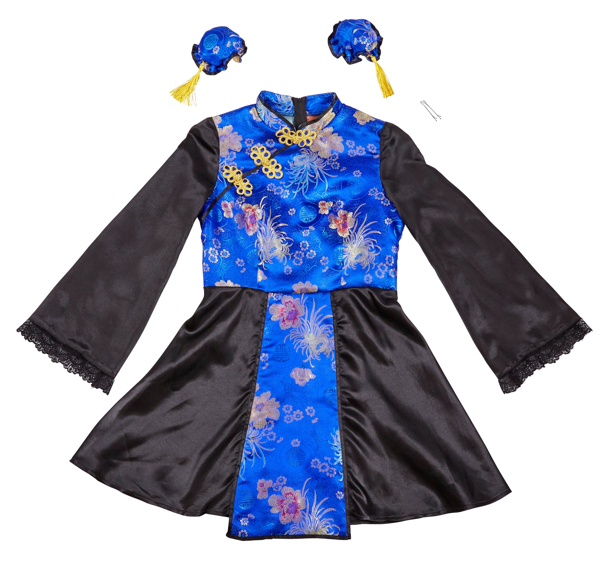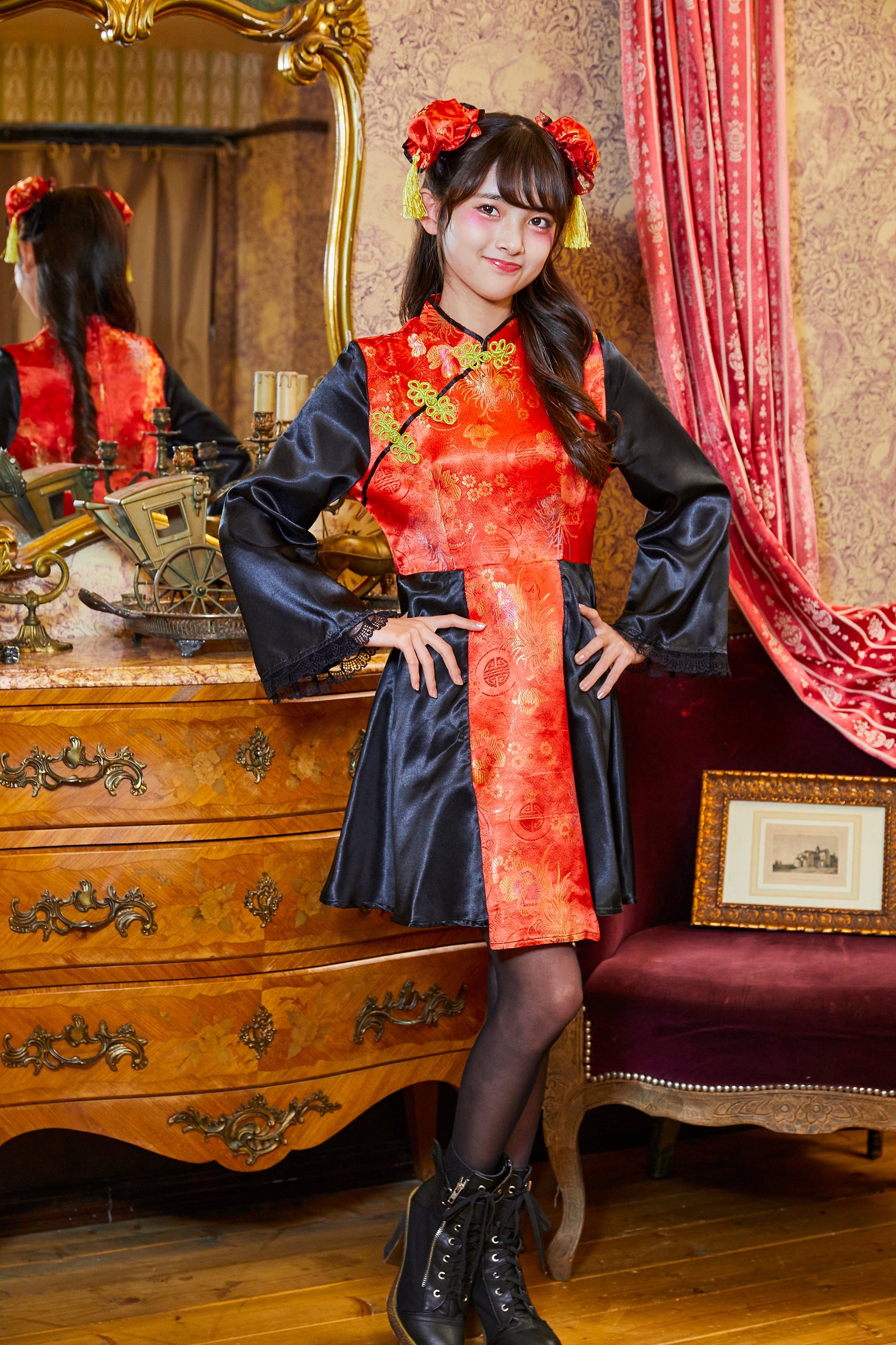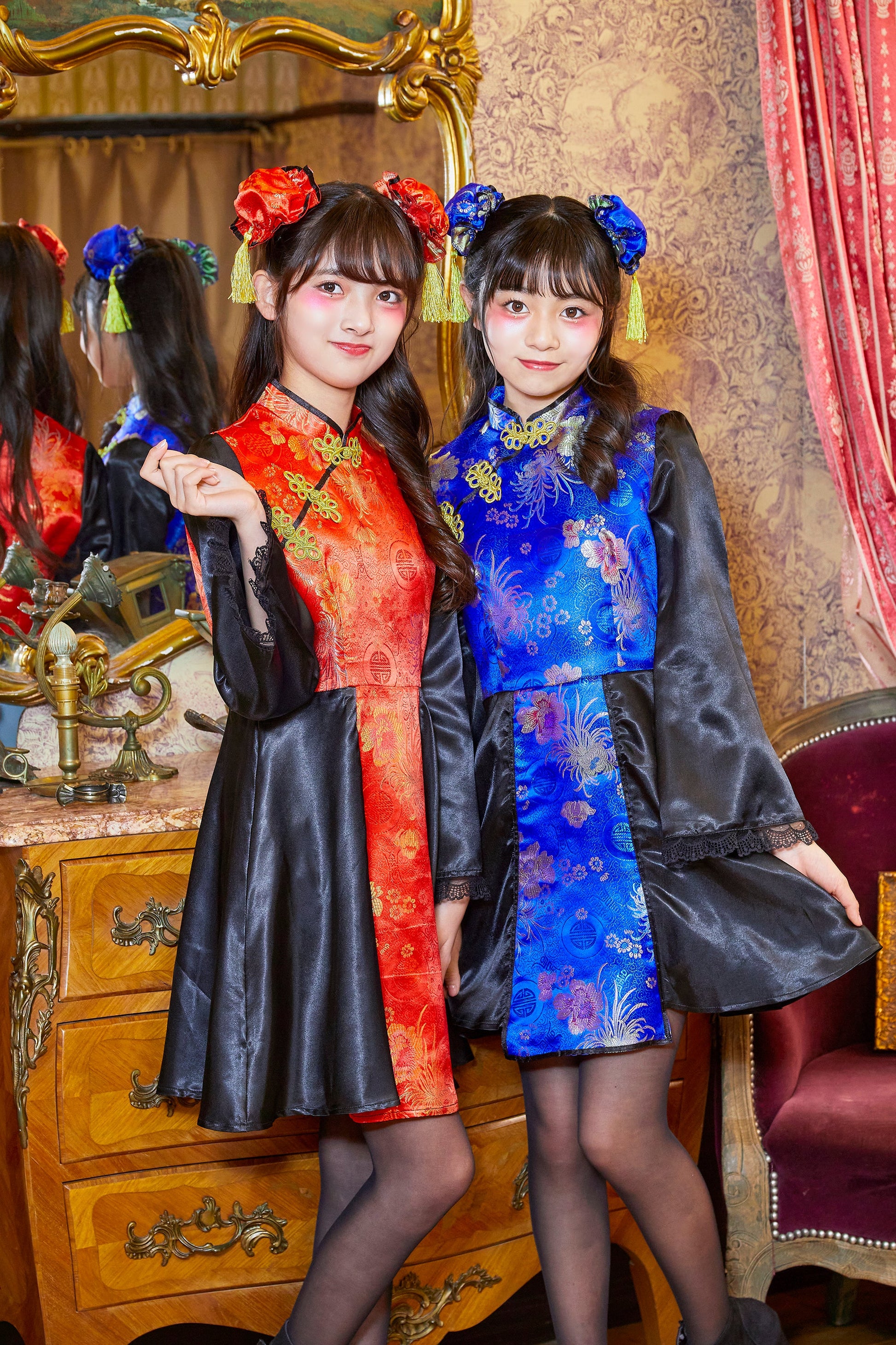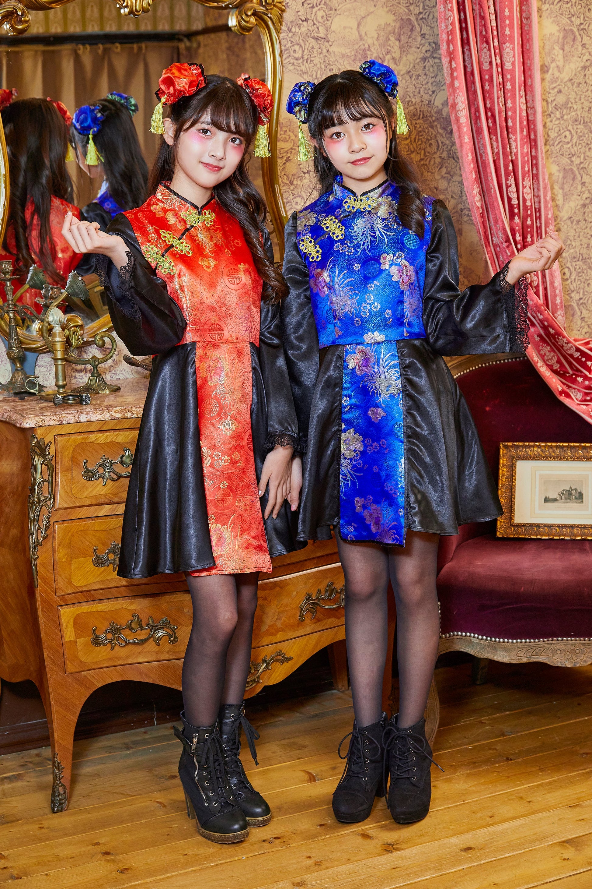 コスプレ ジュニア こども チャイナ COSCHU! チャイニーチャイナ 140~150cm ブラック レッド/ブルー【クリアストーン】