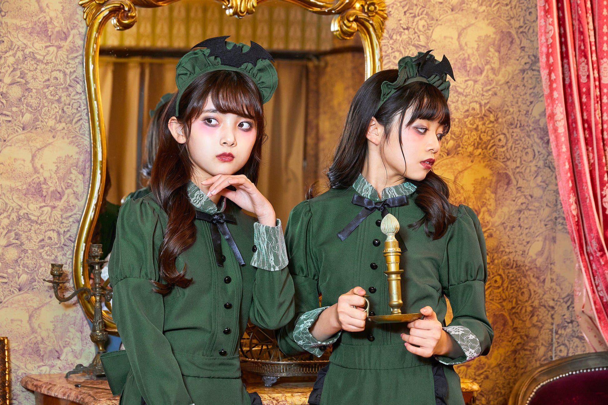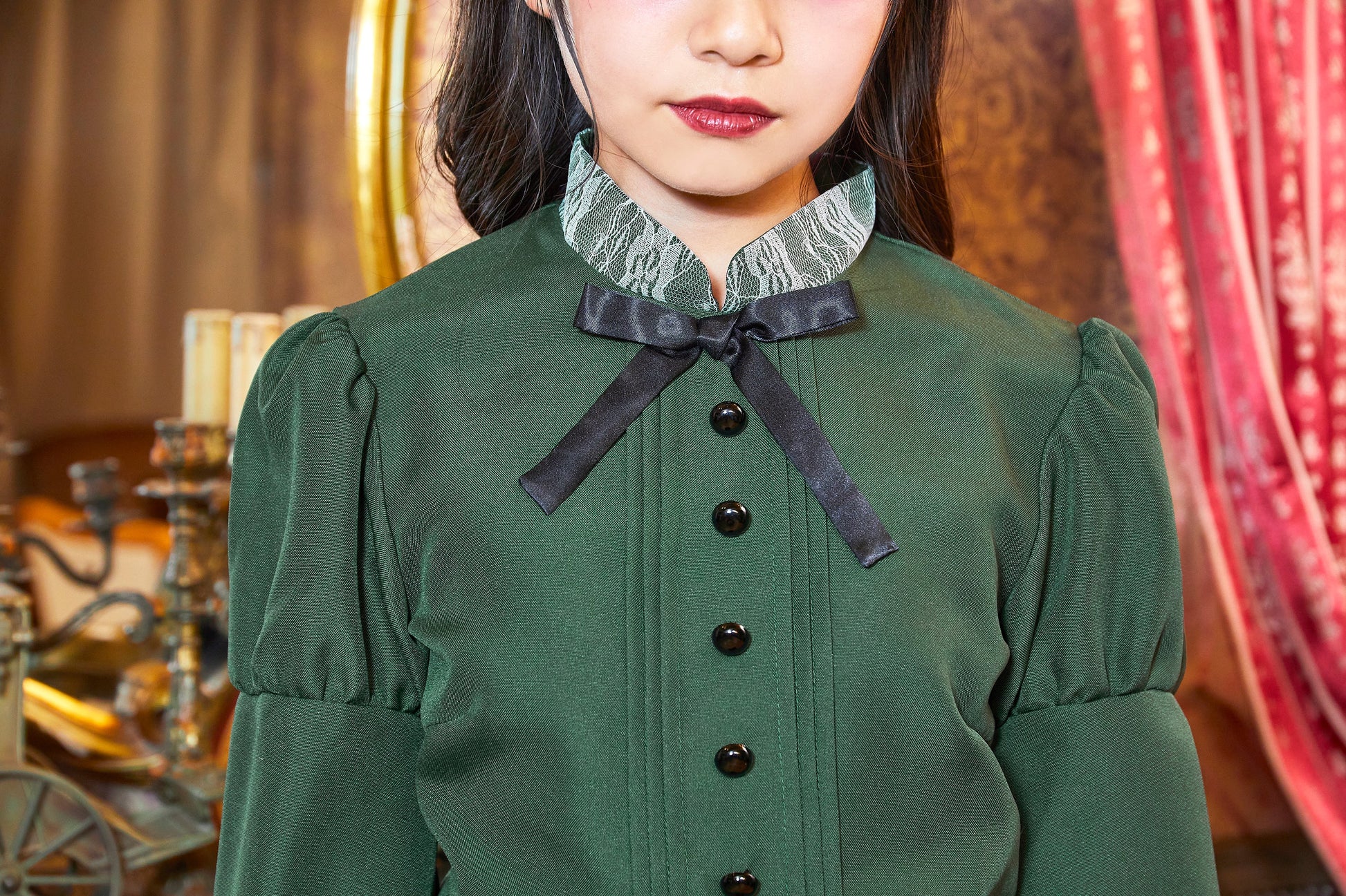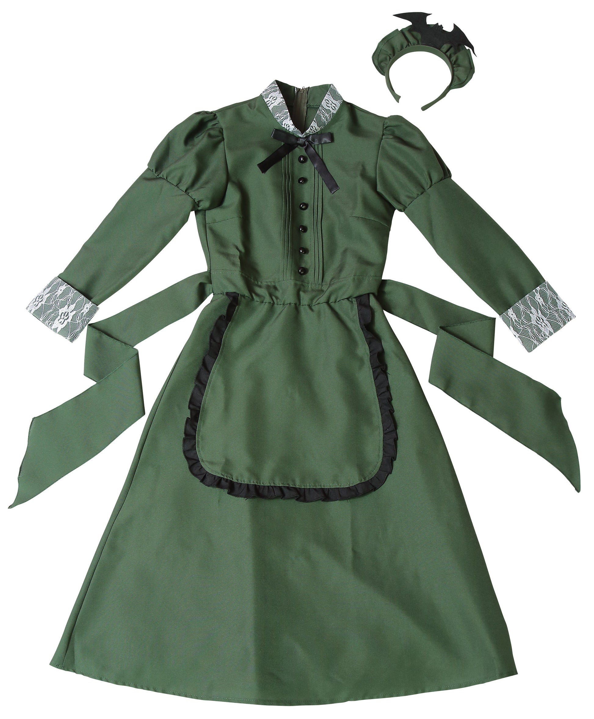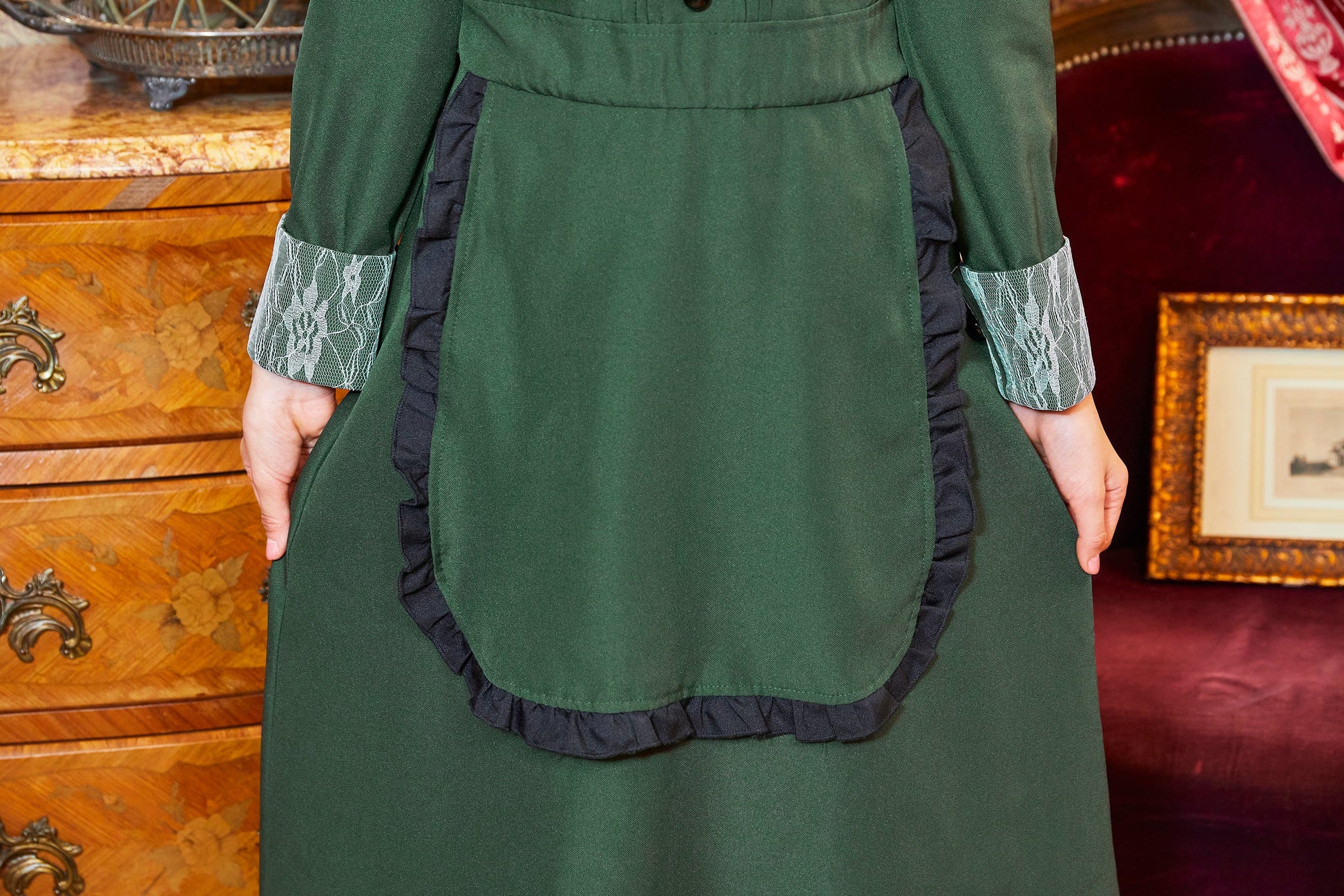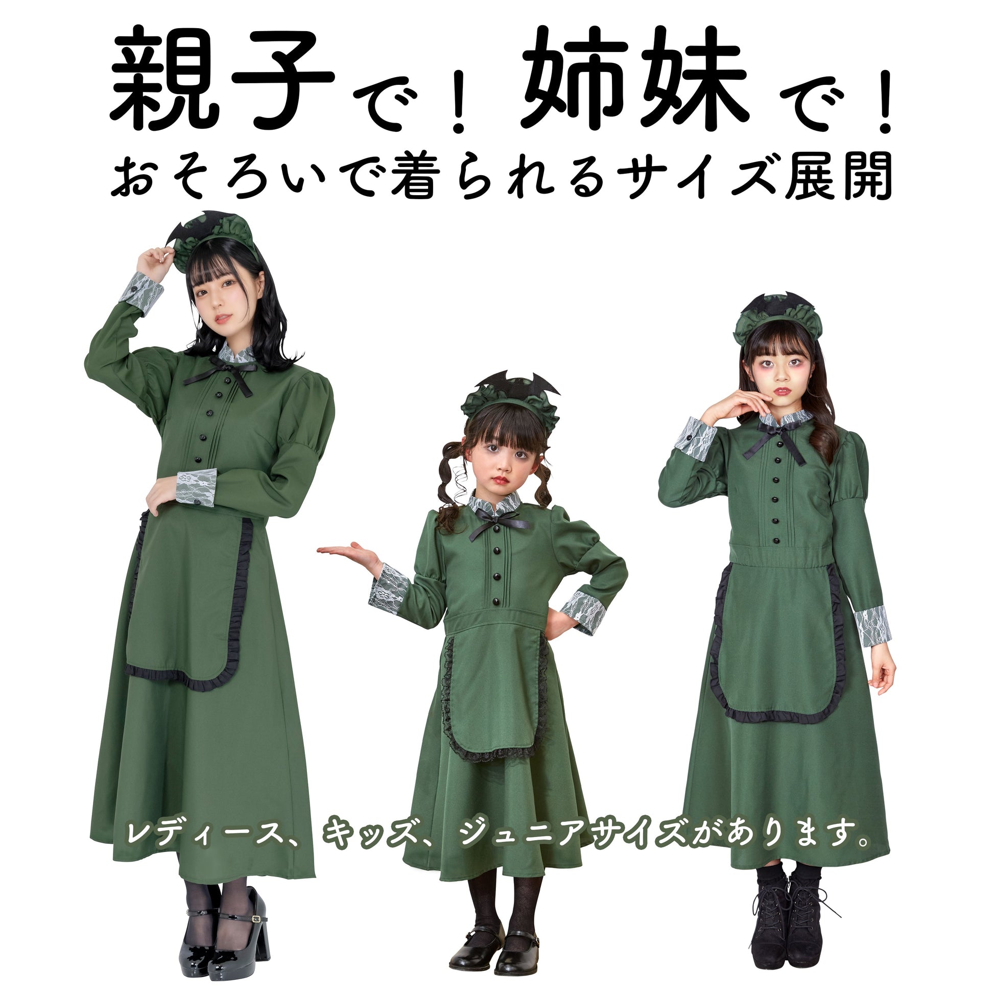 人気デザインのジュニアサイズ!シックなグリーンのメイド服。