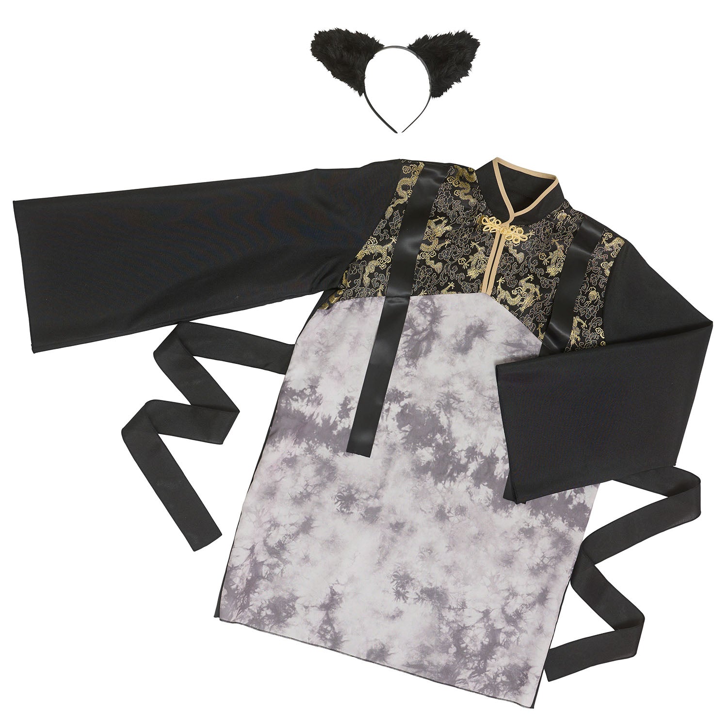 ジュニア向けコスチュームブランド「COSCHU!」キョンシー×オオカミ×ゾンビをテーマにした新しいデザイン大きなオオカミ耳が付いたカチューシャはふわふわの長毛ファーを使用。 トップスはオリジナルの汚れプリントに、黒×ゴールドの本格的なチャイナ生地を掛け合わせました。 チャイナ釦とルーズな長めの袖もポイント。 更に腰紐は前後どちらでも結べる2WAY仕様。 お手持ちのボトムスと合わせるだけでお手軽にハロウィン仮装が完成します。 またユニセックスサイズでゆったりとしたシルエットなので男性も着用でき、女性はオーバーサイズの着こなしをお楽しみいただけます。 ハロウィン、撮影イベントなどさまざまなシーンで活躍します。 |