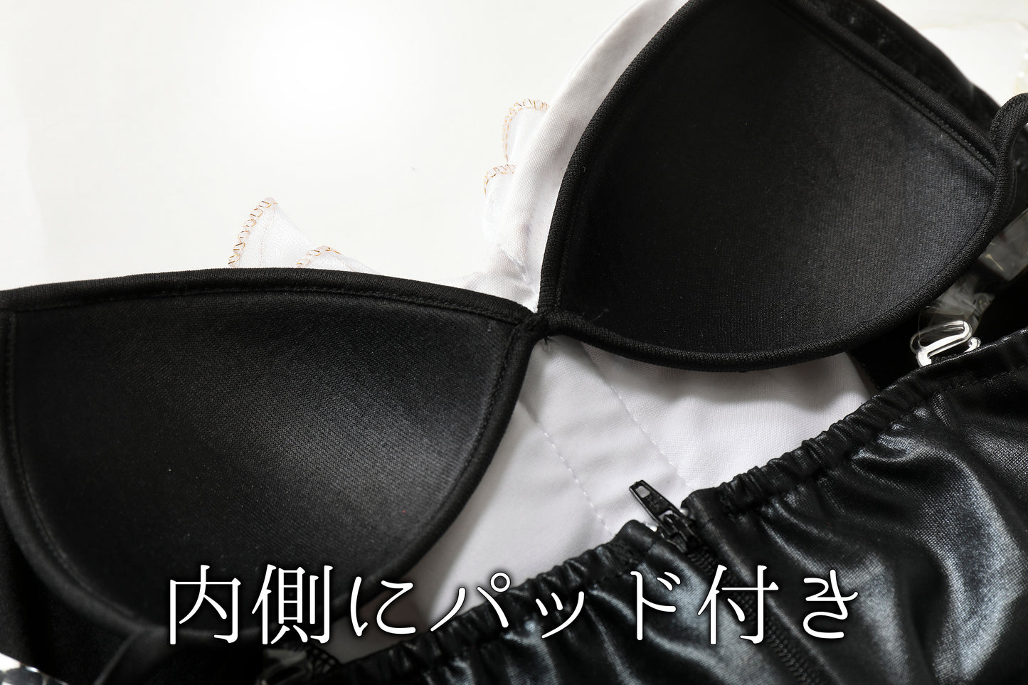 両サイドは編み上げデザインになっており、リボンで露出度を調整出来ます。 大きめのしっぽはバニーガールのポイント! 胸パット付きなので安心して着用いただけます。
