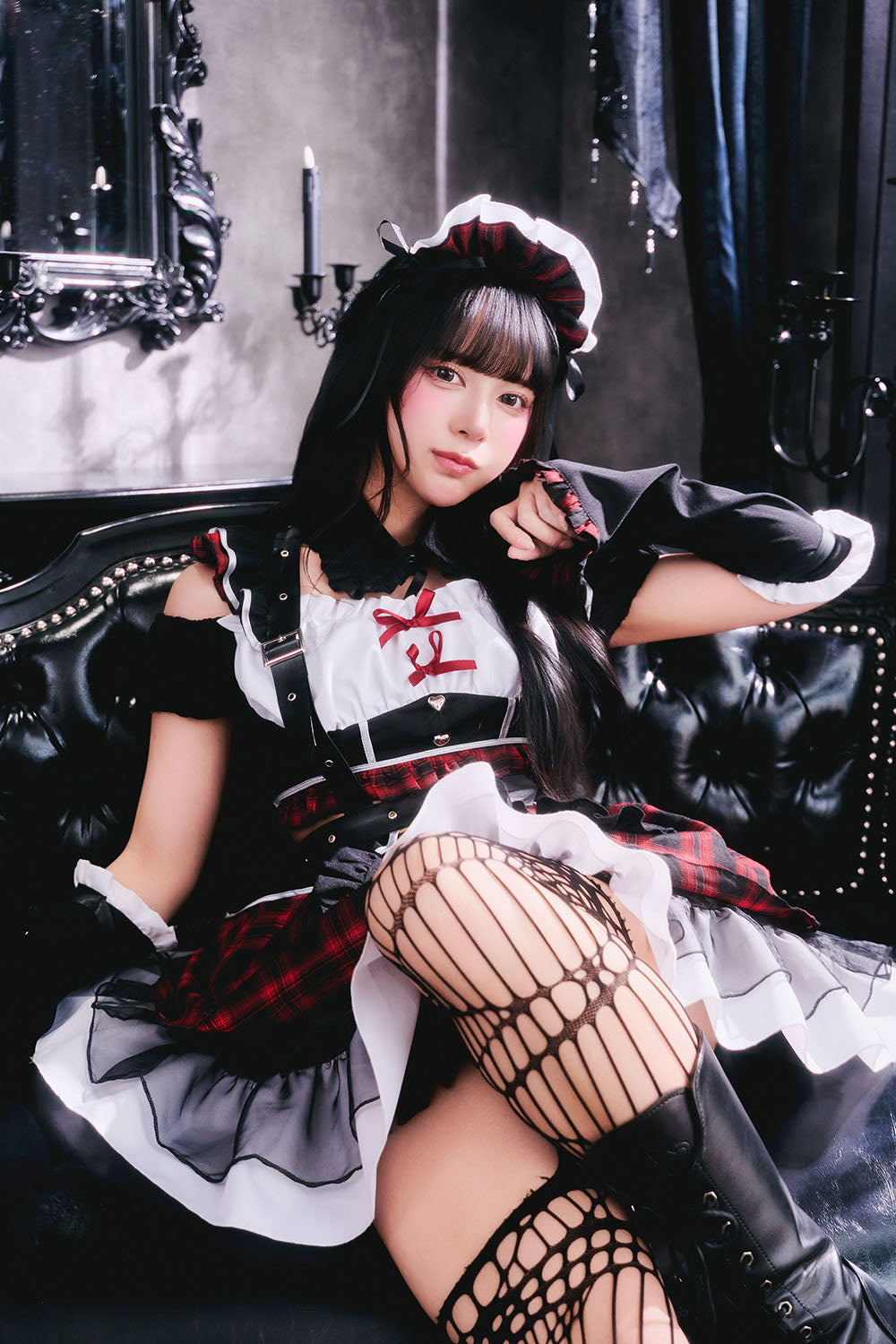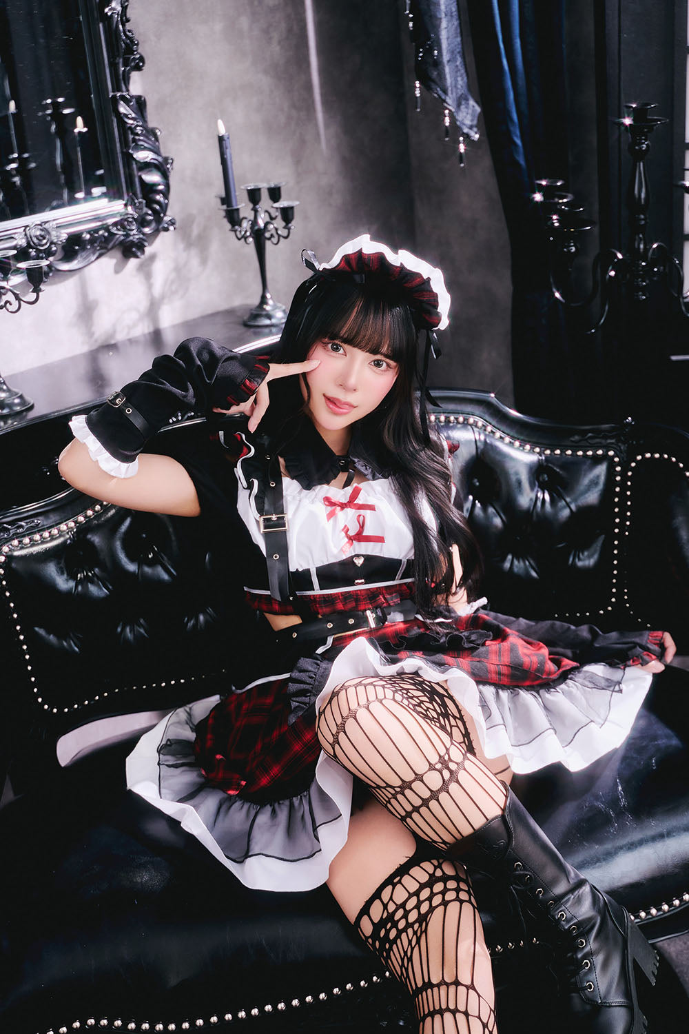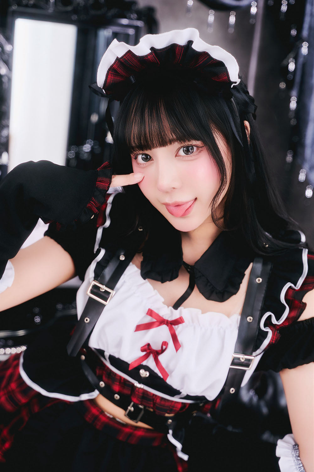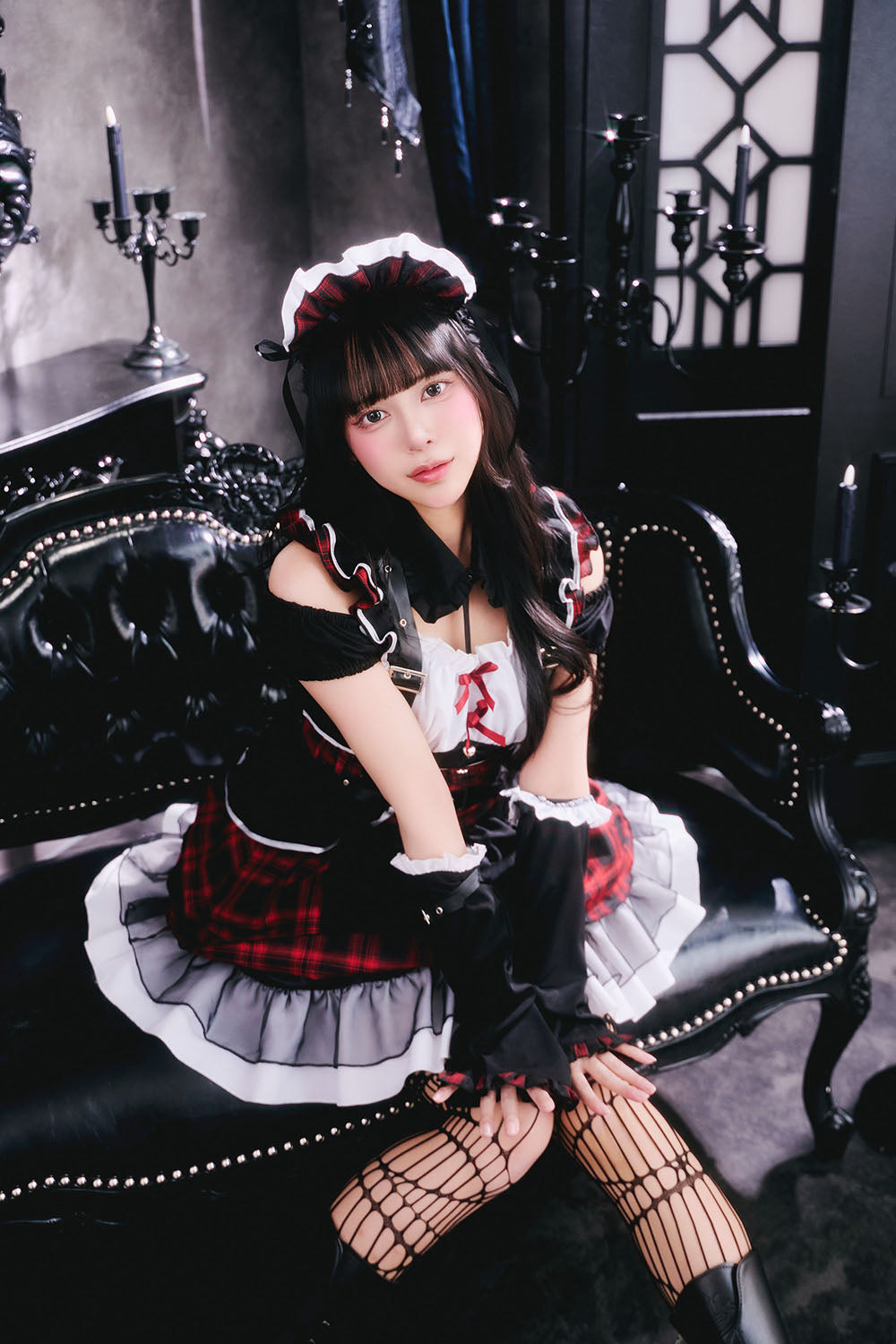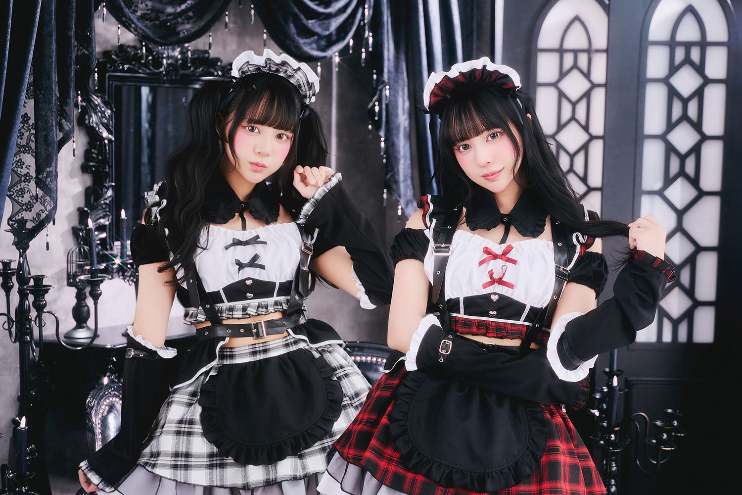 甘さとダークが共存するゴスロリ×パンクコスチューム新シリーズ「♰ゴスパンドール♰」ゴスロリとパンクテイストを掛け合わせた、「かわいさの中にダークさを秘めた世界観」を表現した「ゴスパンドール」シリーズ。 ブラックを基調に、モノトーンチェック/赤チェックを組み合わせたロックテイスト漂うメイドコスチュームです。 胸元にはあえて白い生地を使用し、全体の印象を引き締めつつ、コントラストの効いたデザインに仕上げました。 ハーネス付きベルトやアームカバーをセットにすることで、メイドスタイルに程よいハード感をプラスし、シリーズらしいエッジの効いた印象を演出しました。 一方で、フリルやリボンなどの装飾を随所に取り入れ、可愛らしさもしっかりとキープ。 甘さとロック感のバランスにこだわり、撮影やイベントシーンでも存在感のあるスタイリングを楽しめます。 |