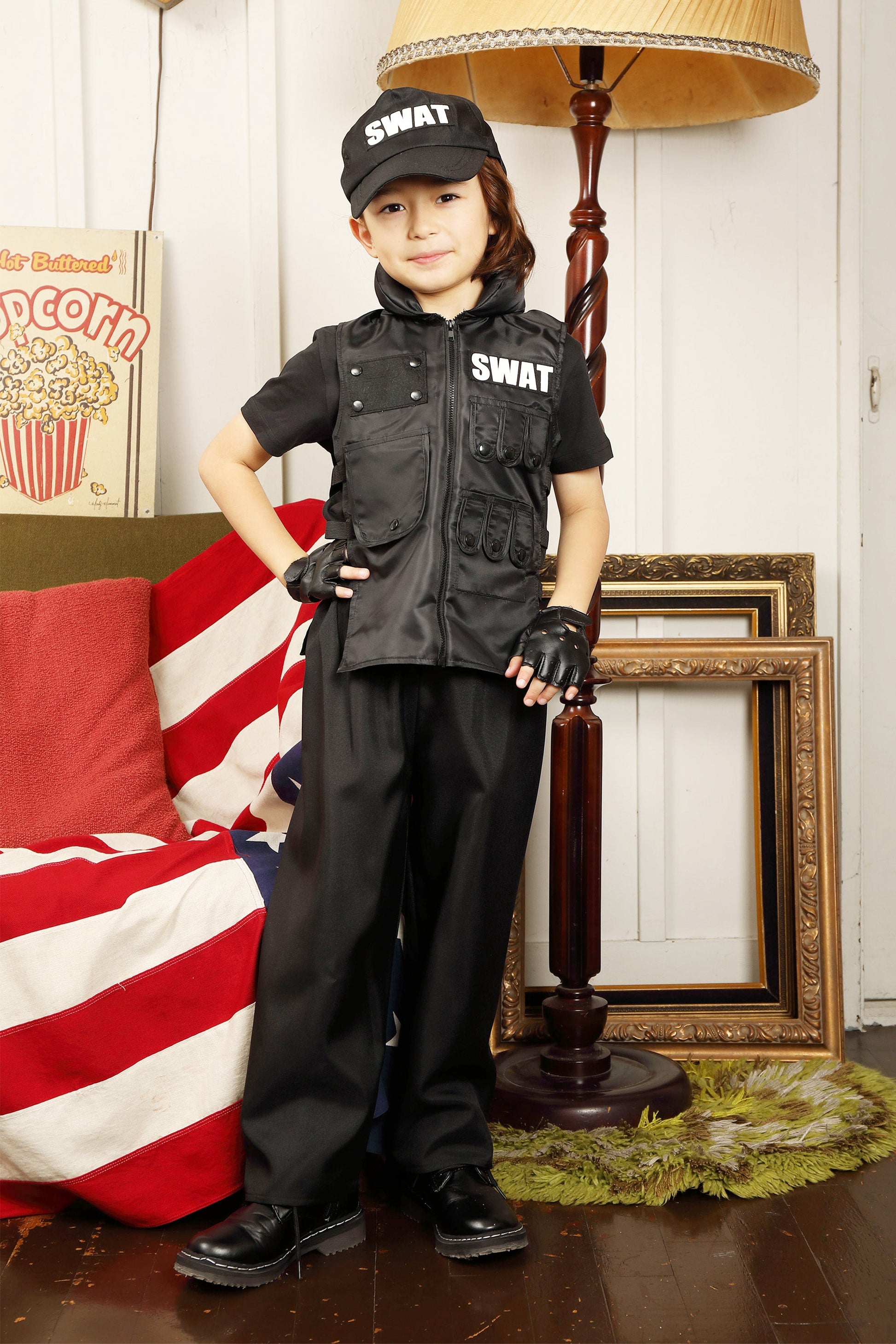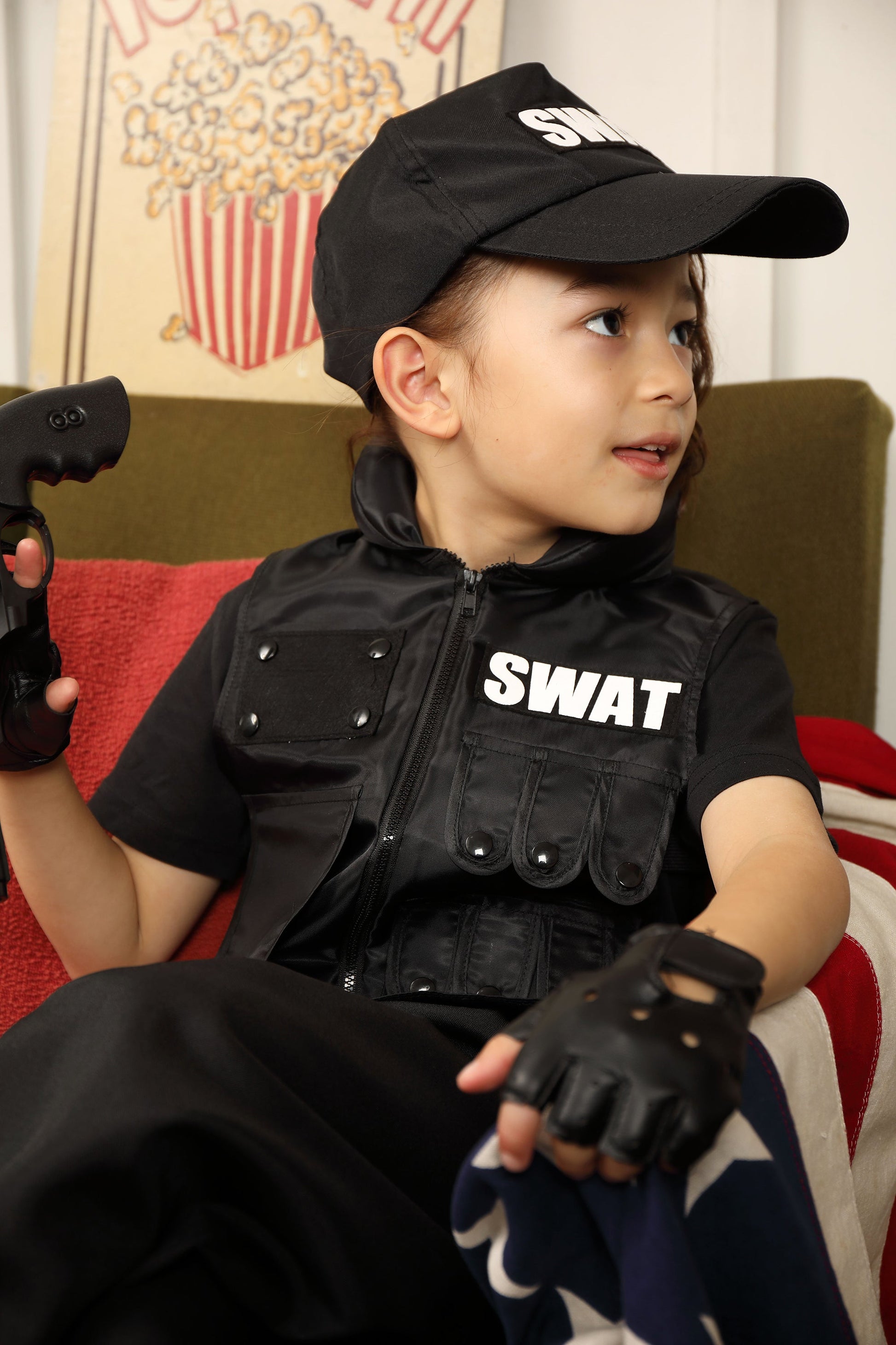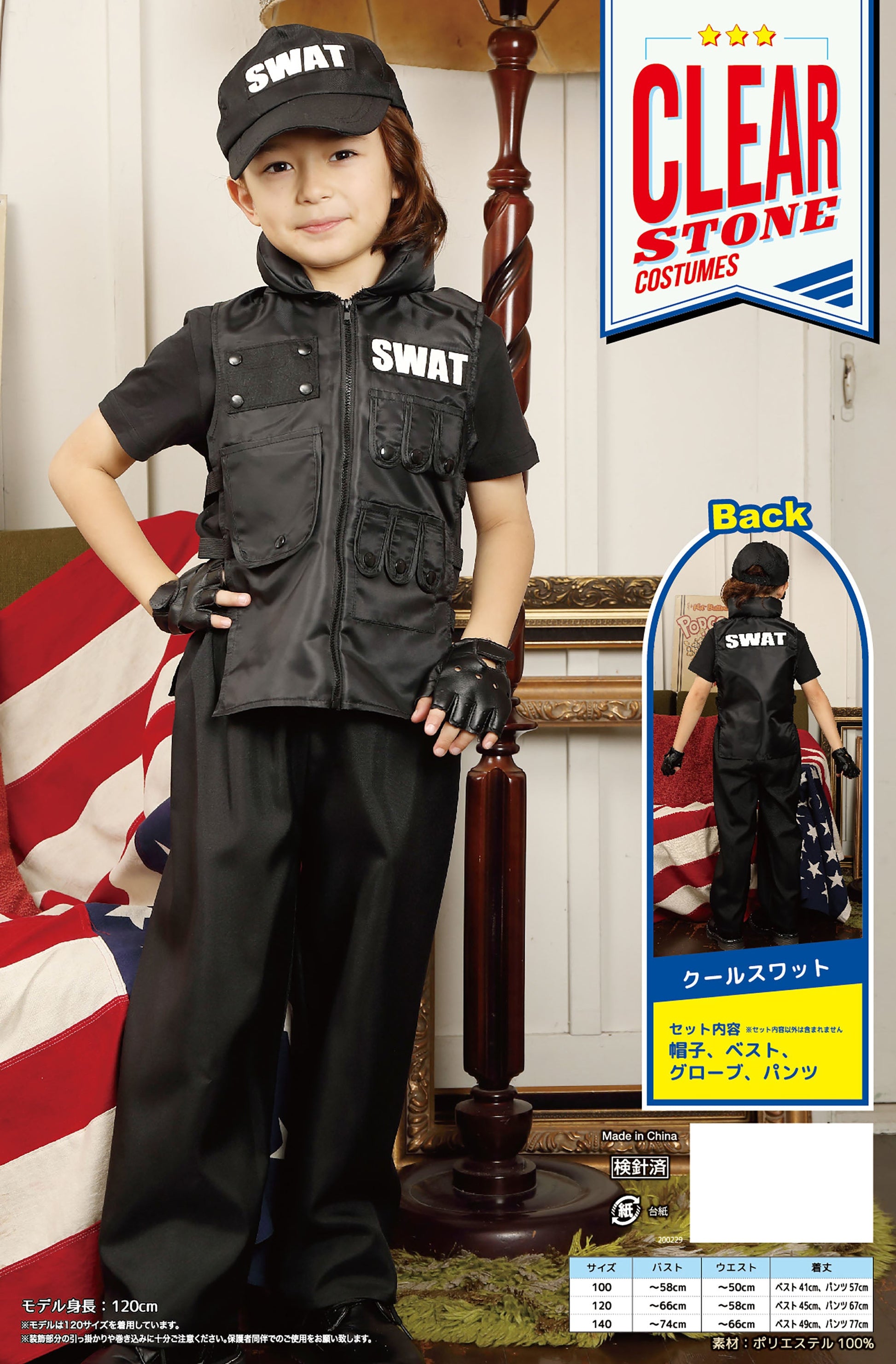 コスプレ キッズ こども スワット ハロウィン クールスワット 100cm/120cm/140cm ブラック【クリアストーン】