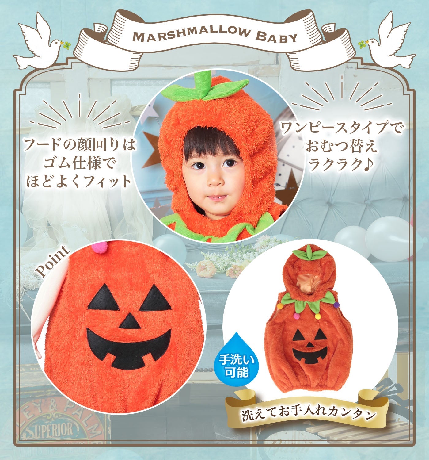 コスプレ 赤ちゃん ジャックオランタン マシュマロベビー マシュマロパンプキン ベビー 80cm オレンジ【クリアストーン】