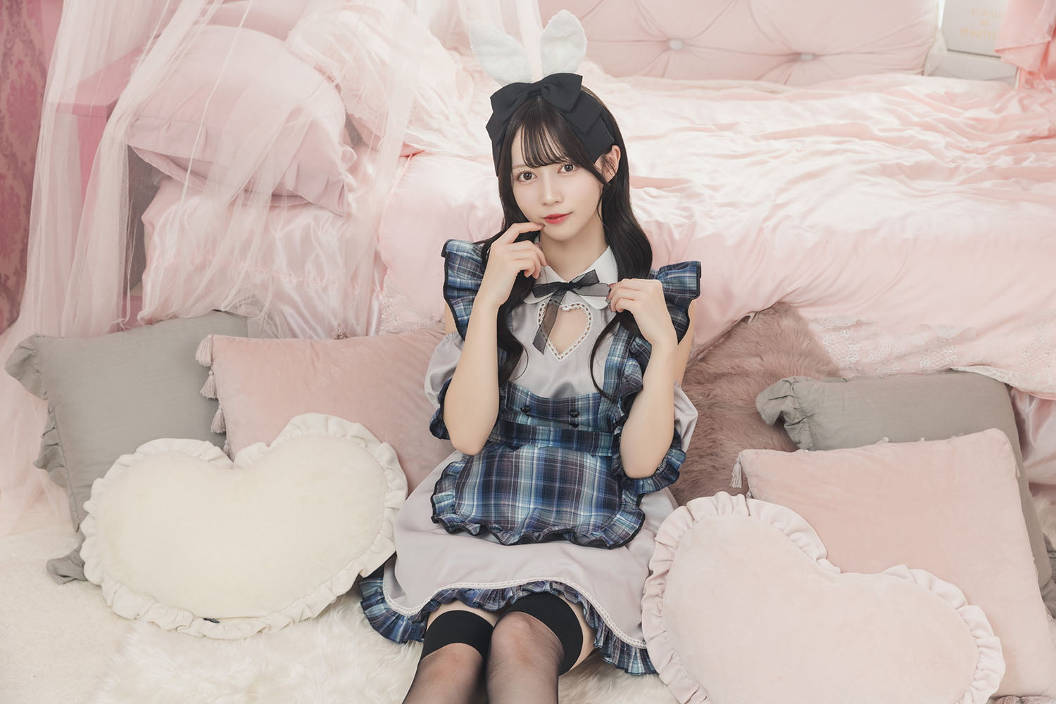 JamsCollection の水瀬さららちゃんが着こなす、ロマンチックなメイド服シリーズ「Lyrical palette/リリカルパレット」上品な配色のワンピースと、リボンがついたうさ耳カチューシャがかわいい