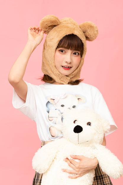 コスプレ 小物 もふもふくまちゃん/ぱんだ かぶりもの アニマル 動物 仮装 フリーサイズ ブラウン/モノトーン【クリアストーン】