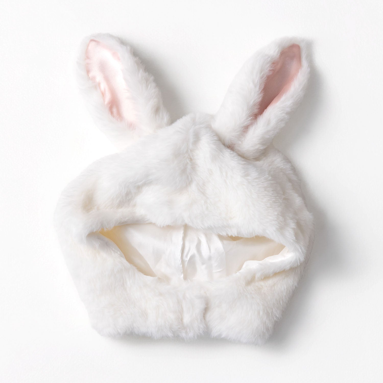 ふわふわのファーが愛らしい、うさぎのかぶりものです。