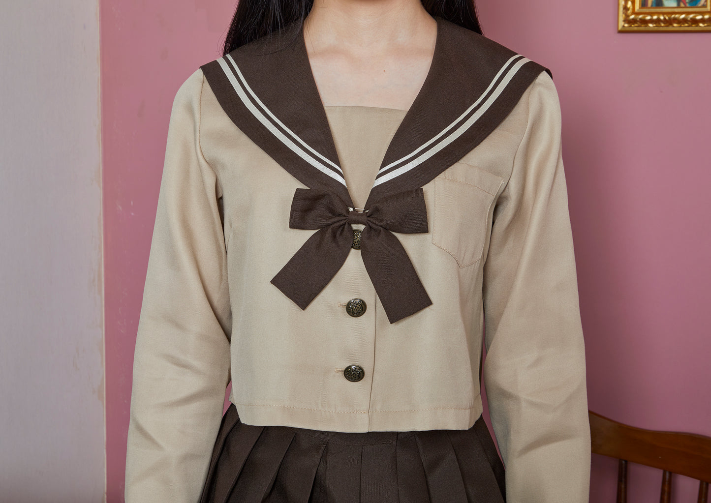コスプレ 制服 セーラー服 オルチャンセーラーレディース フリーサイズ ベージュ ブラウン【クリアストーン】♡