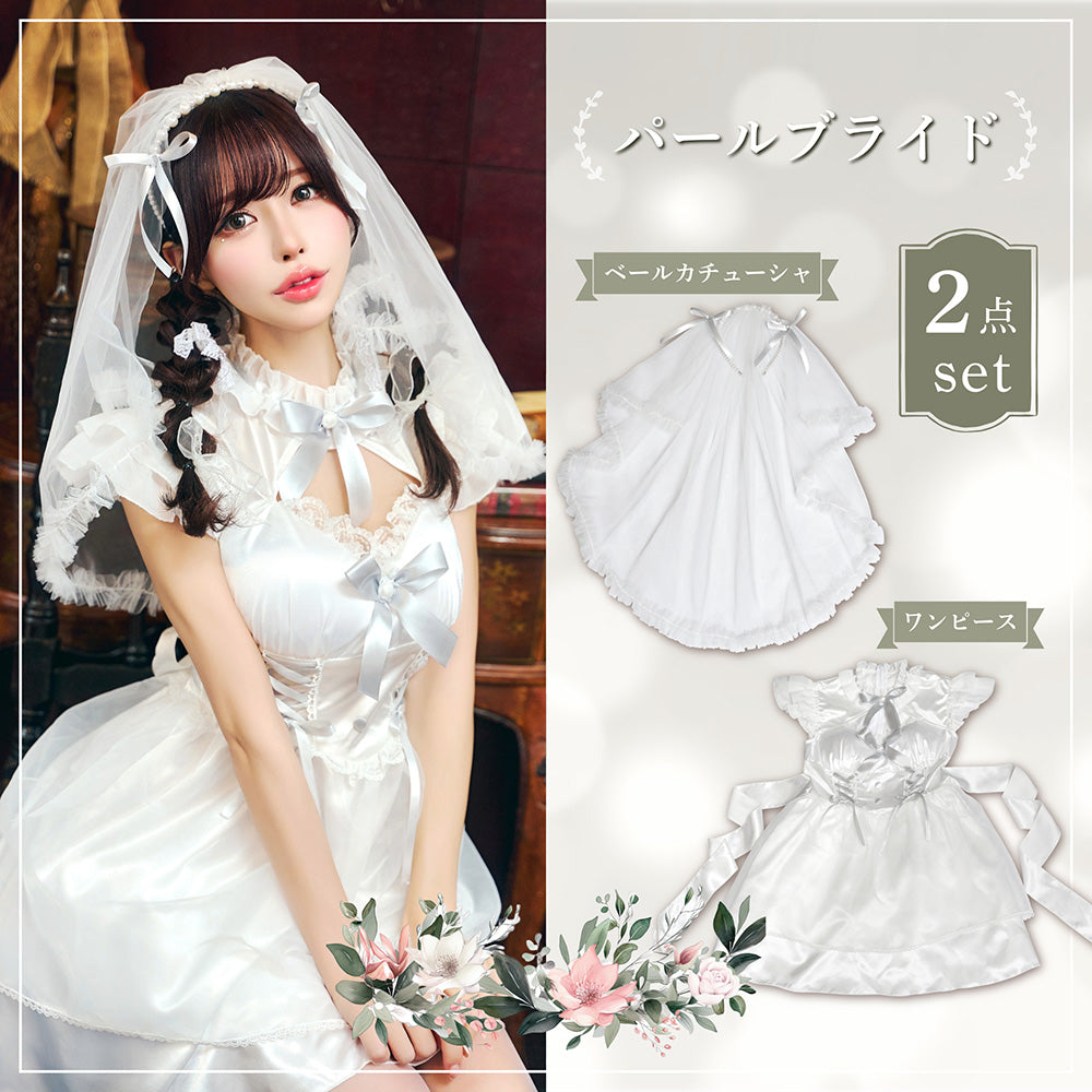 女の子の憧れ!ウェディングドレスをコンセプトにしたブライド風コスチュームパール装飾と厚みのあるストレッチサテン生地で上品に♡ワンピースタイプ