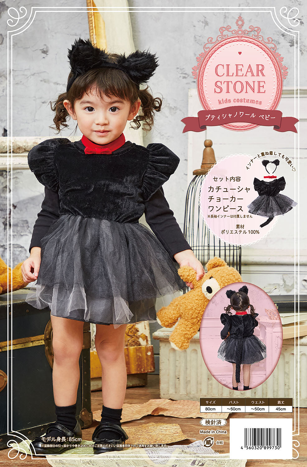 コスプレ ベビー ねこ アニマル プティシャノワール 女の子 80cm ブラック 【クリアストーン】