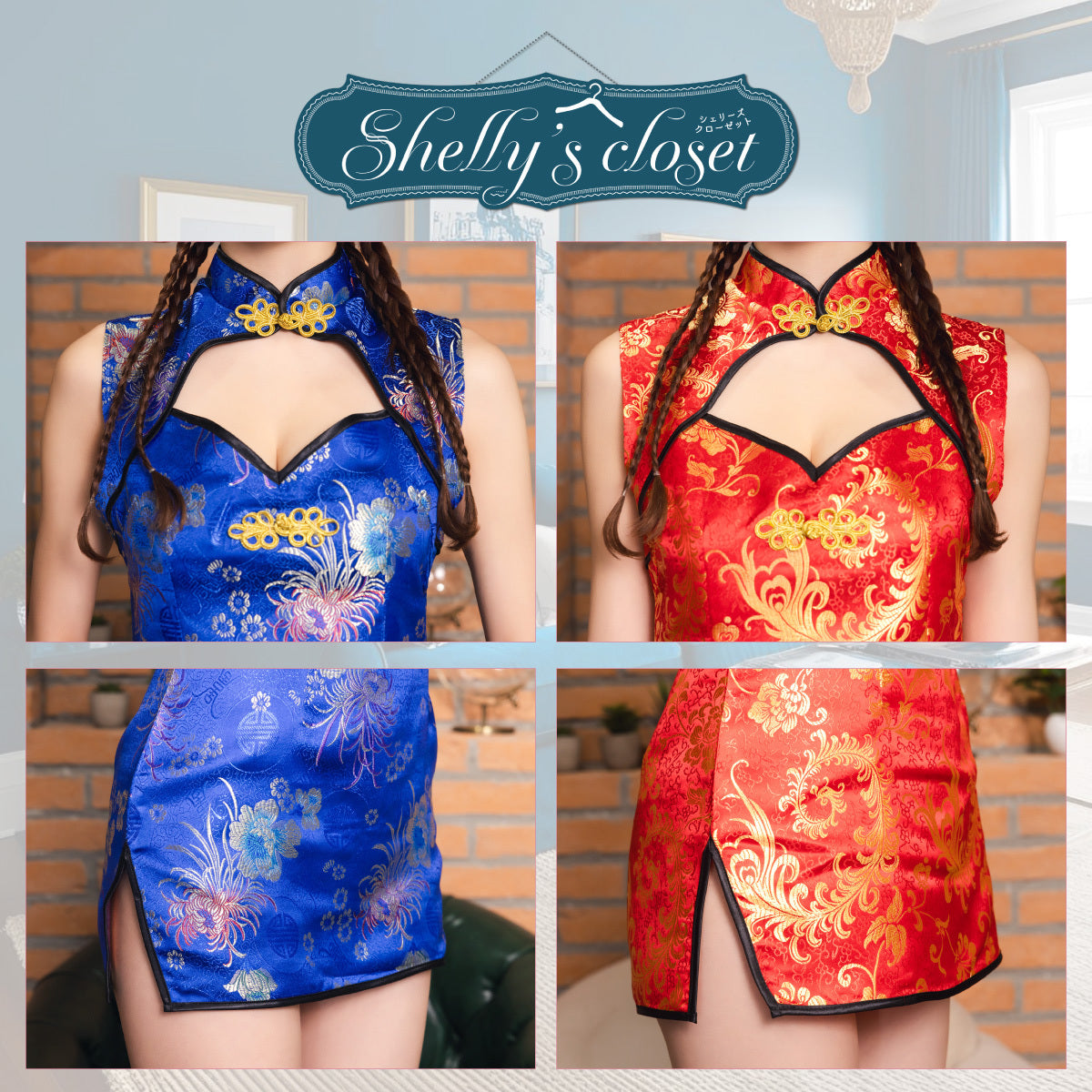 コスプレ チャイナ シェリーズクローゼット レディース フリーサイズ ブルー/レッド【クリアストーン】♡