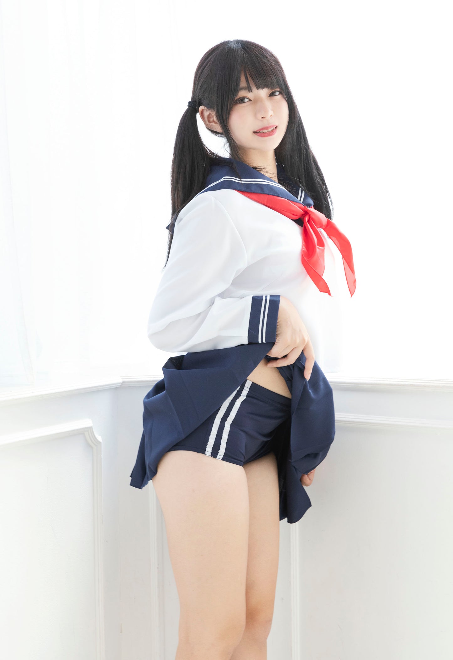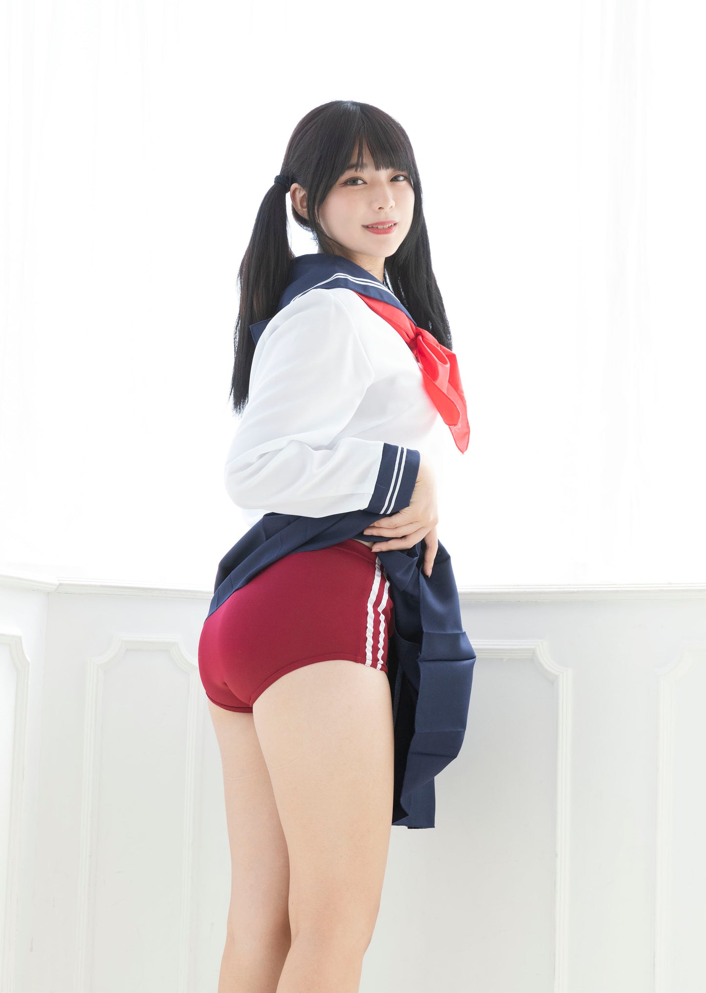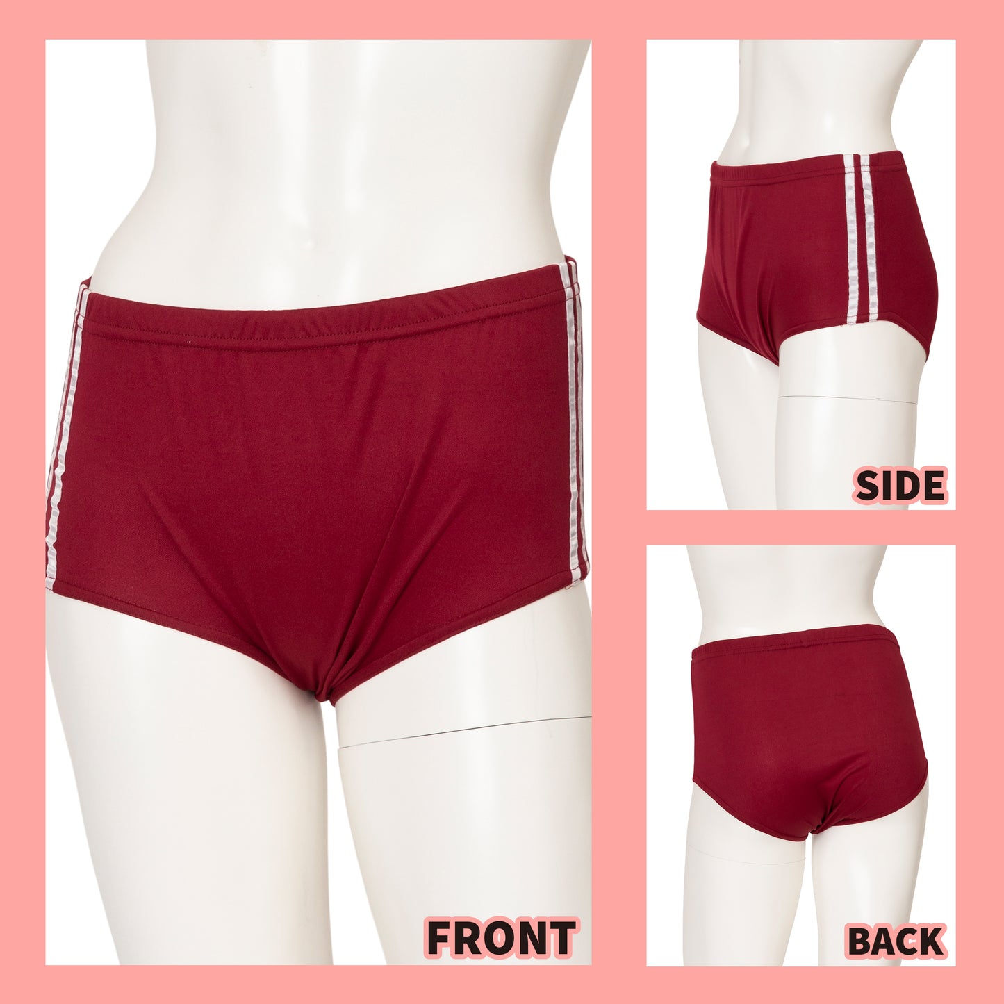 単品のブルマはウエストゴムで履きやすく、サイドのラインがポイント。 見せパンとしてコスプレに合わせても使いやすいアイテムです。 紺とエンジの二色展開。 |