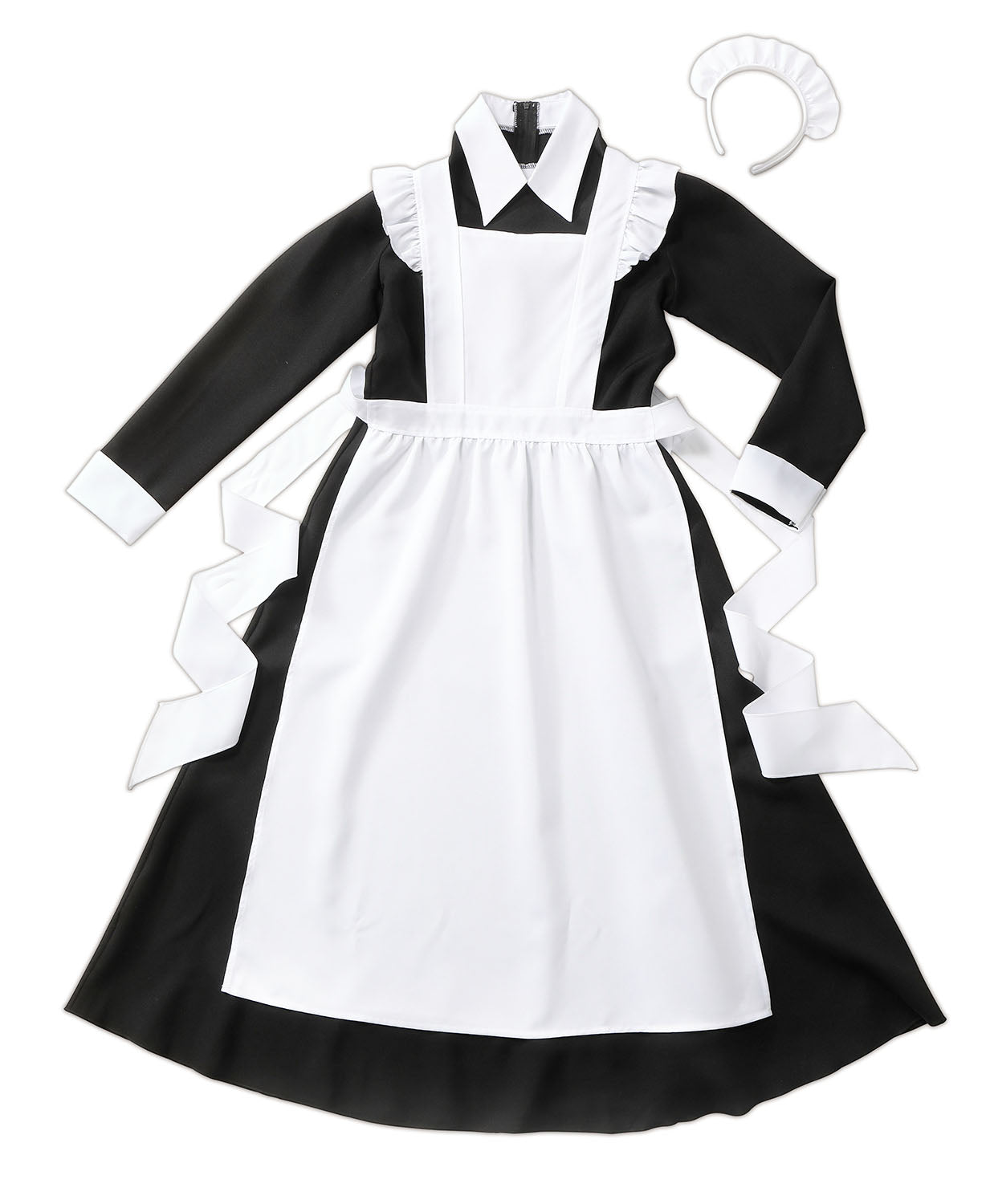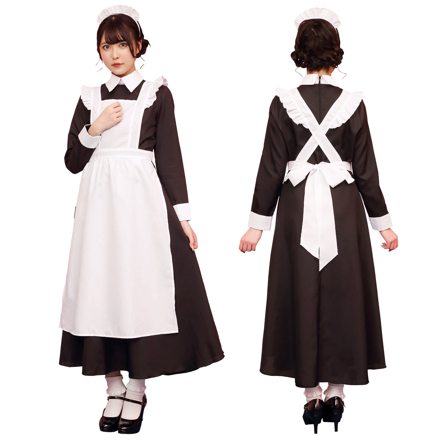 コスプレ メイド ロングメイド レディース M ブラック【クリアストーン】